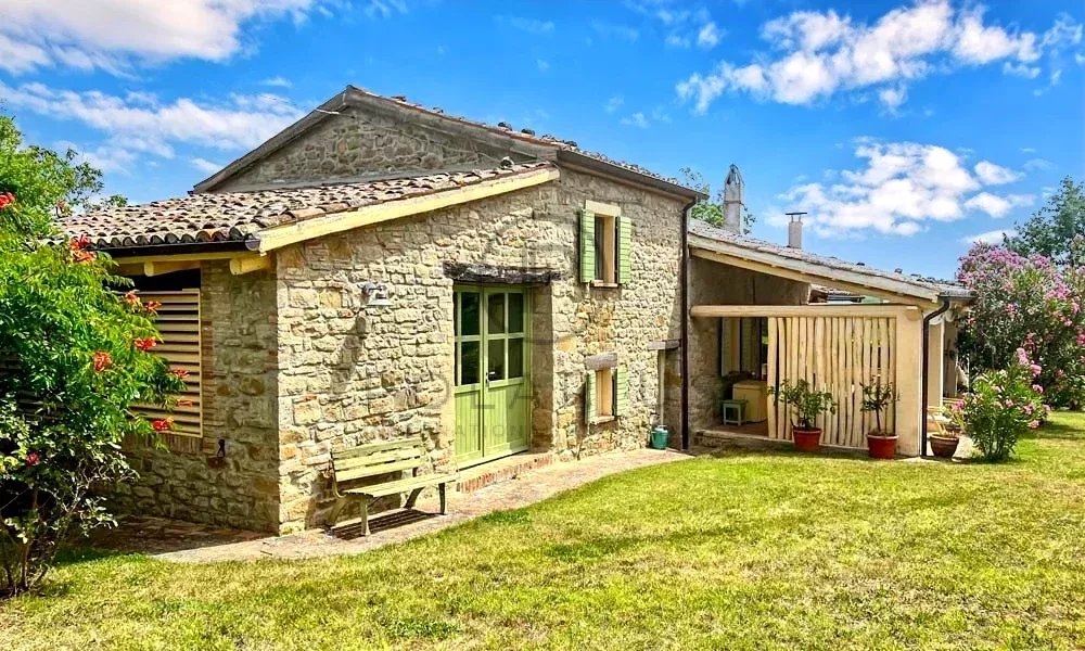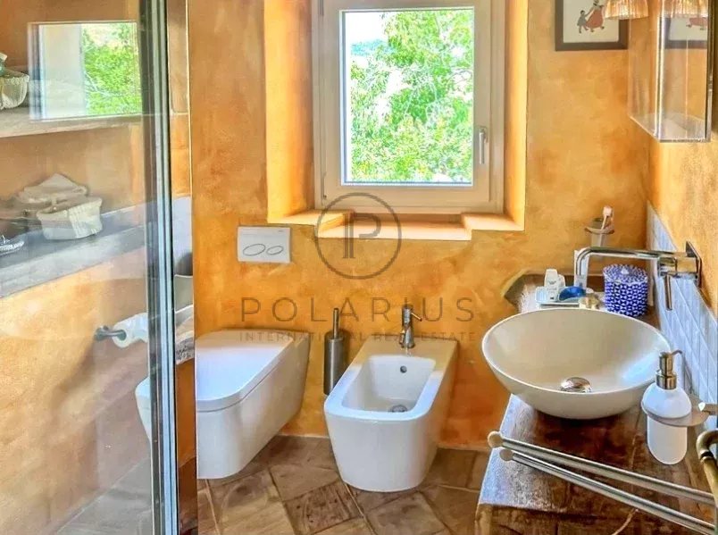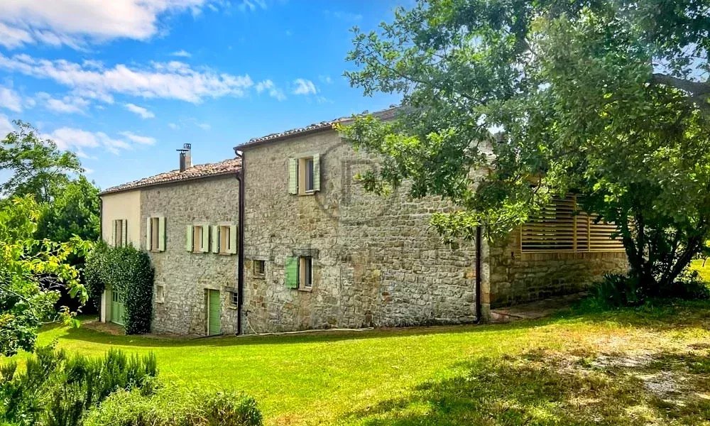 Entdecken Sie diese atemberaubende dreistöckige Villa in den sanften Hügeln der Marken, nur eine kurze Fahrt von der Adriaküste entfernt. Umgeben von 3 ha Panoramaland mit Oliven- und Obstbäumen verbindet diese wunderschön restaurierte 300 m² große Steinvilla rustikalen Charme mit modernem Komfort.