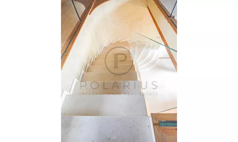 Die Hauptvilla ist ein Jubel aus Raum, Technologie und edlen Materialien. Verteilt auf 550 qm. Auf 2 Ebenen gelegen, wecken der Komfort und die Aussicht, die man sowohl im Erdgeschoss als auch im ersten Stock genießen kann, den Wunsch, immer zu Hause zu bleiben.