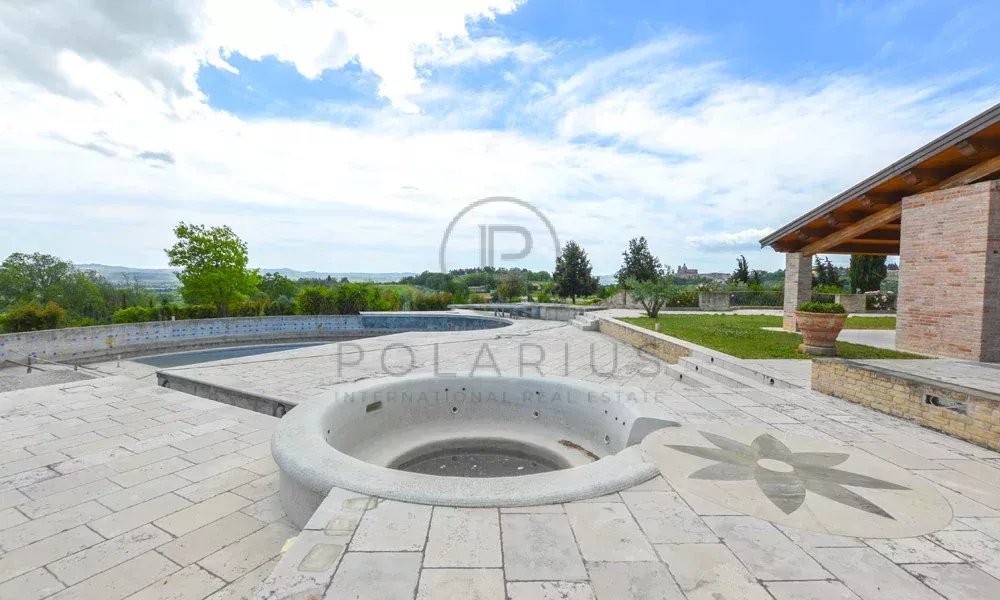Diese majestätische Villa im Zentrum der Marken, früher ein traditionelles Bauernhaus, bietet Stil, Qualität, viel Platz und einen herrlichen 180°-Blick über die Adria und das mittelalterliche Dorf. Wenn Sie auf der Suche nach einem repräsentativen Haus für sich und Ihre Familie sind, in dem Sie Freunde und Geschäftspartner willkommen heißen und ihnen den Atem rauben können, dann erwartet Sie dieses Anwesen, bestehend aus einer Hauptvilla, 2 Nebengebäuden, 3,5 Hektar Land und einem riesigen Swimmingpool für dich.