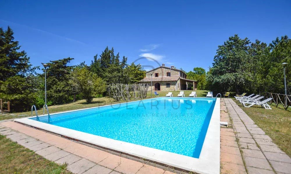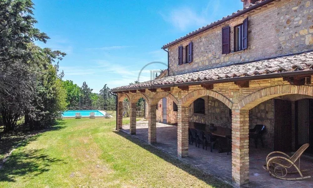Dieses wunderschön restaurierte, 430 m² große Bauernhaus aus Stein liegt in der Nähe von San Venanzo in Umbrien und bietet auf zwei Etagen fünf Schlafzimmer und drei Badezimmer.