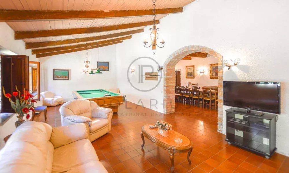 Das Anwesen ist von einem privaten, drei Hektar großen Park mit Eichen und Kiefern umgeben und bietet viel Privatsphäre. Ein 16 x 7 m großer Pool ergänzt den Außenbereich, zusammen mit zwei 75 m² großen Laubengängen, die sich ideal für Mahlzeiten im Freien eignen.