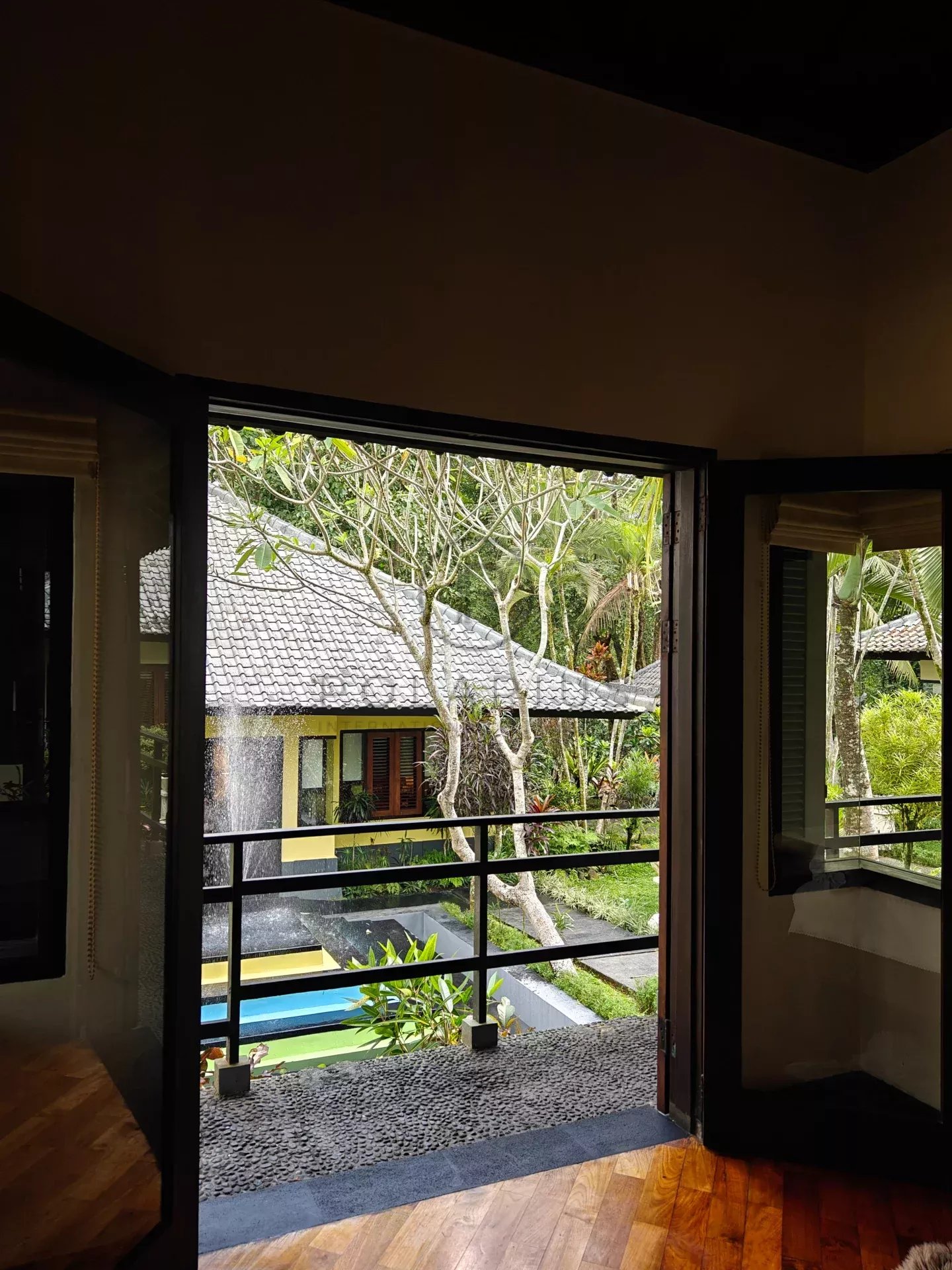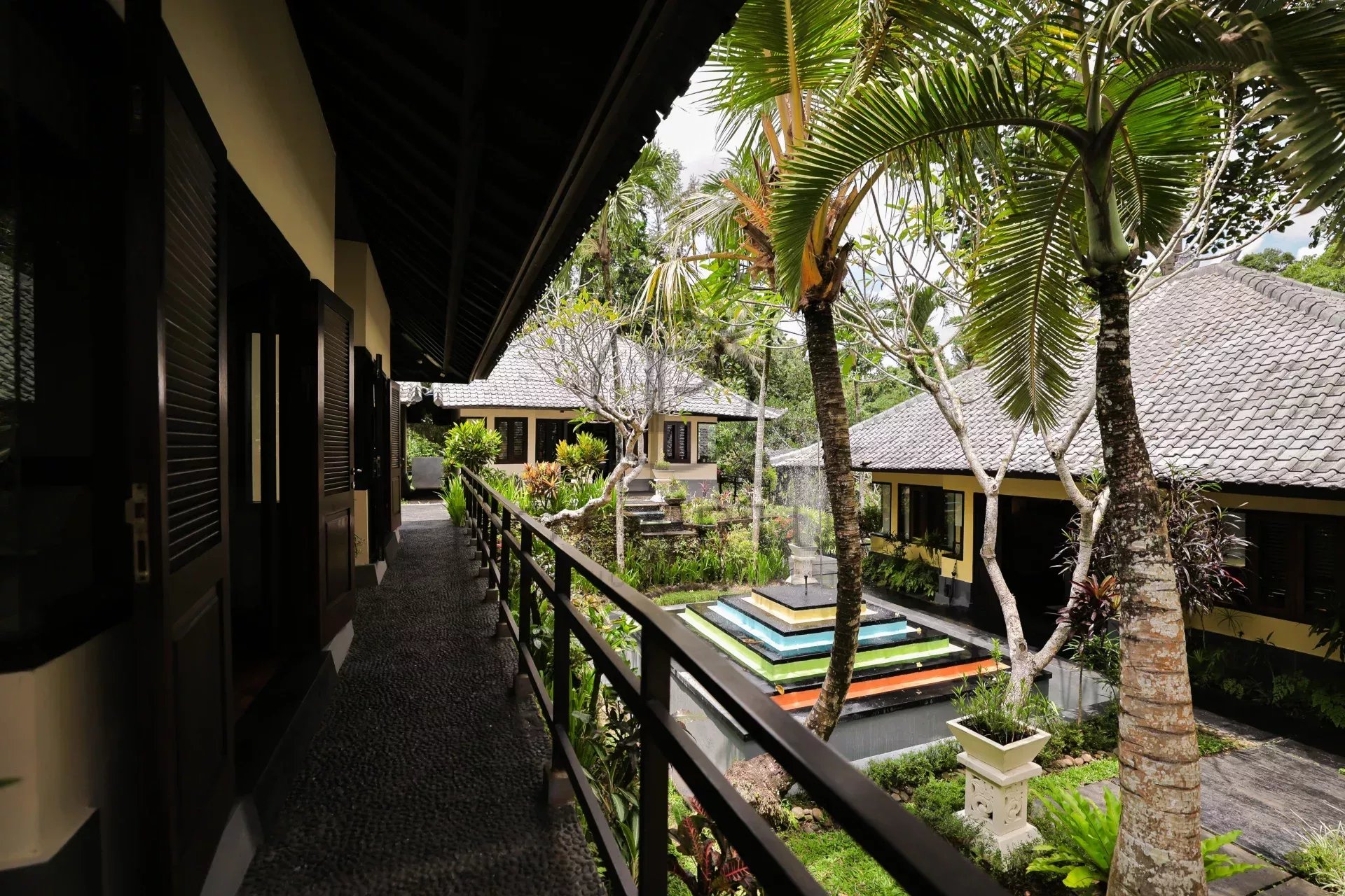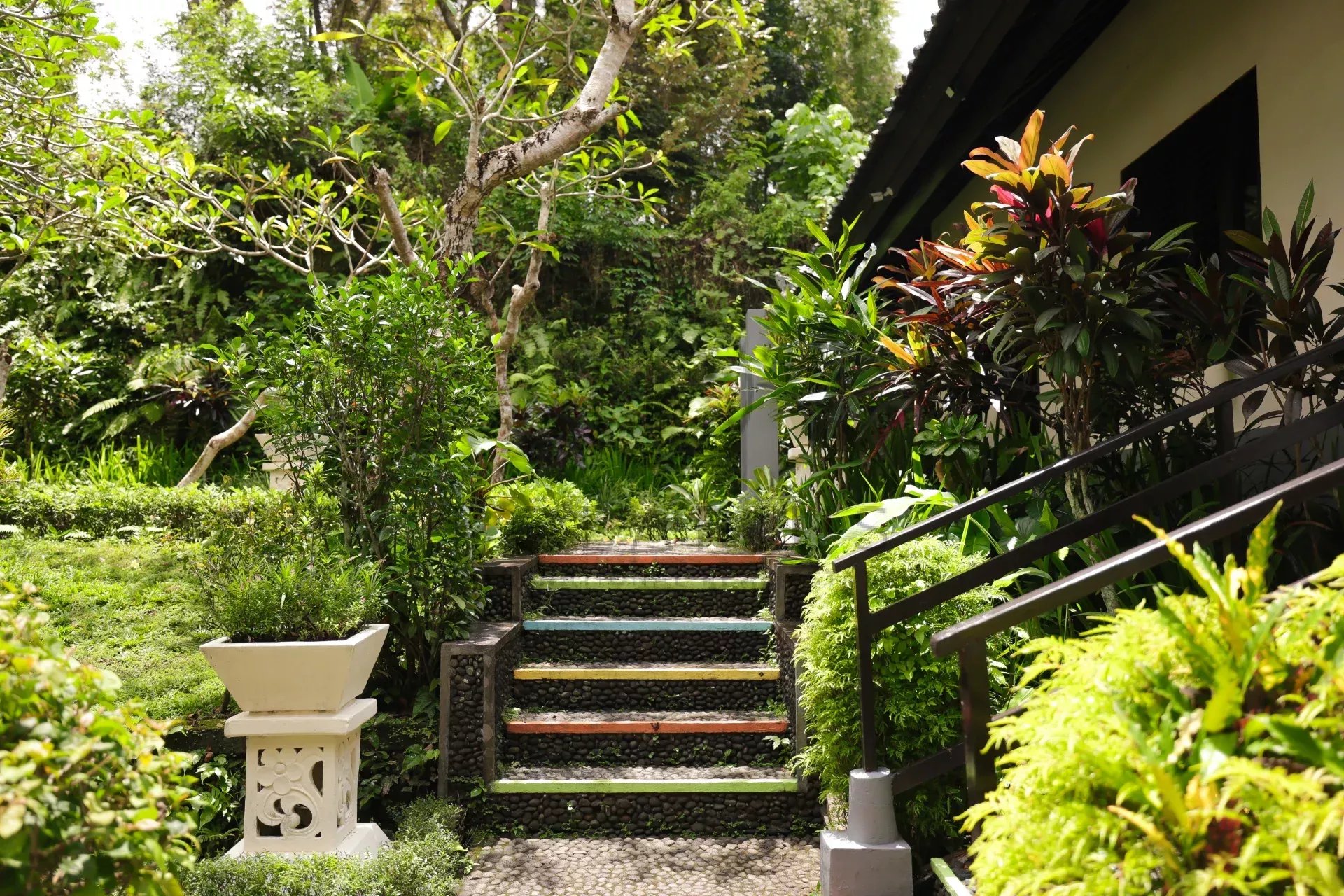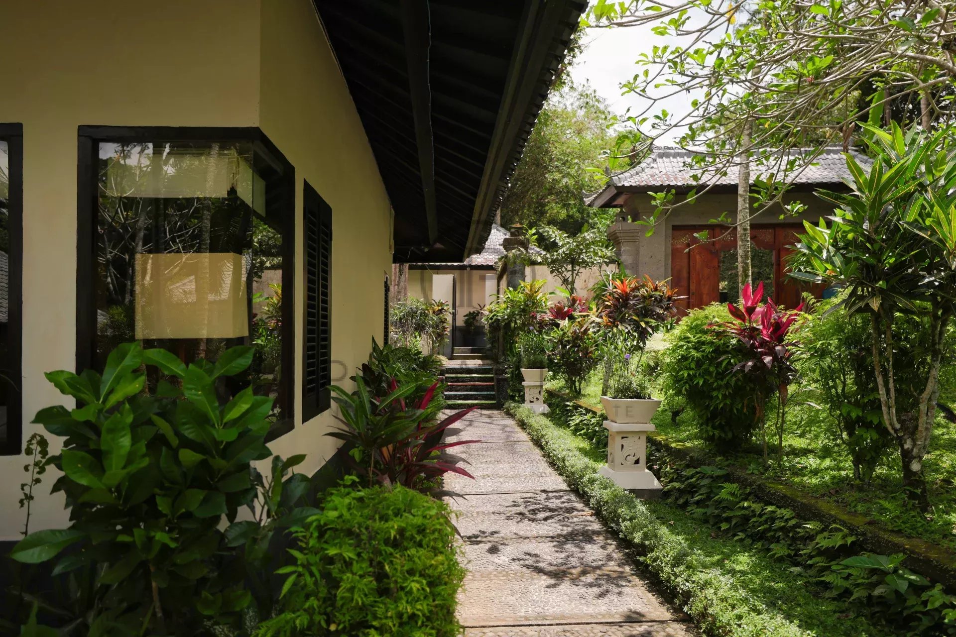 Das Anwesen liegt auf einem 4.350 m² großen Grundstück und bietet eine atemberaubende Kulisse, umgeben von tropischen Bäumen und an einer Ecke eines ewigen Flussufers gelegen, strategisch gesichert, um Balis faszinierende Naturschönheit zu bewahren.