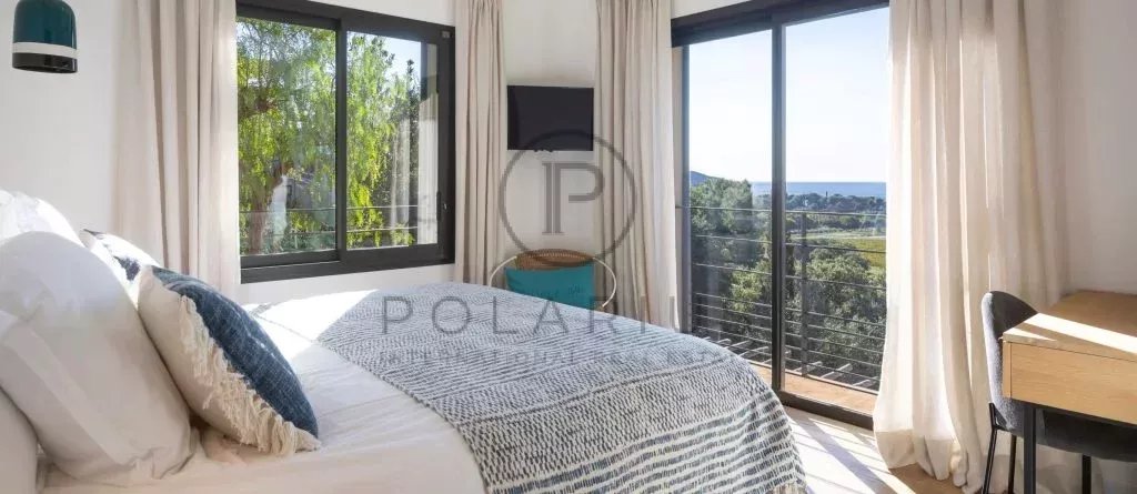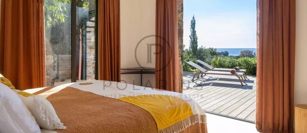 – Doppelzimmer mit Kingsize-Bett und direktem Zugang zur Terrasse mit Meerblick