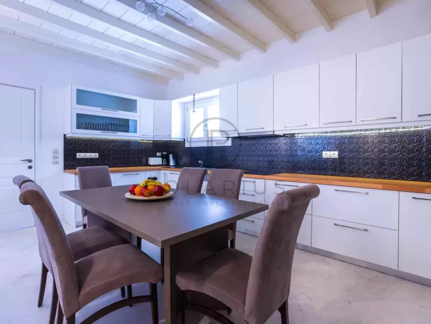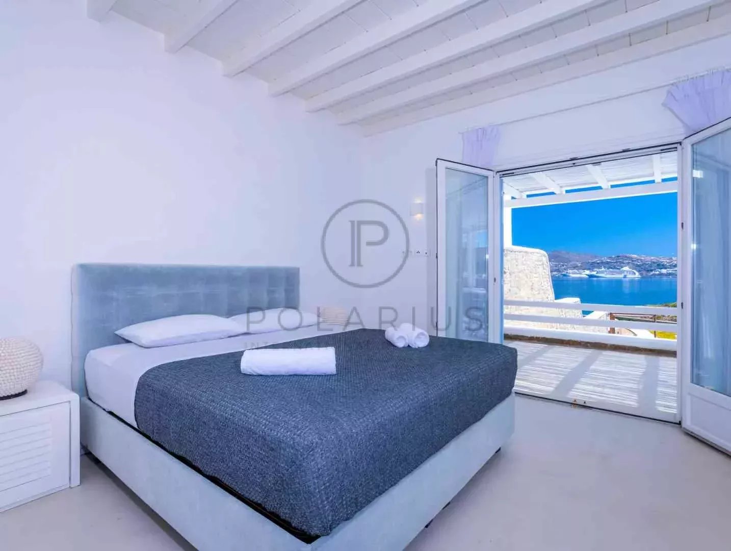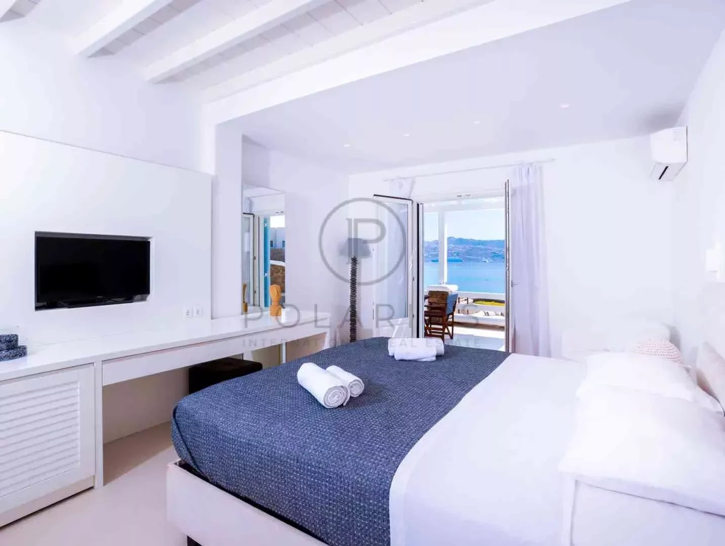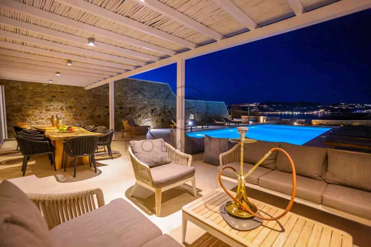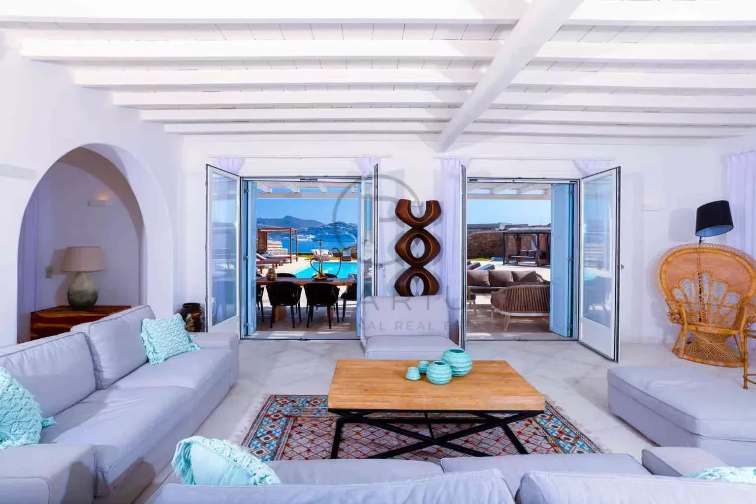 Klarer blauer Himmel und ein Privatstrand mit kristallklarem Wasser, so weit das Auge reicht, umgeben Sie von eleganten und geräumigen Loungebereichen sowie der kykladischen Architektur der Villa. Der Außenbereich erfüllt einfach in jeder Hinsicht jedes individuelle Bedürfnis in einer oasenartigen Umgebung. Das Deck schwebt fast über den Wellen und ist mit Sonnenliegen ausgestattet, ideal für Freizeittage, an denen Sie die Sonne genießen können. Ihre einzige Aufgabe besteht darin, am fantastischen Pool zu entspannen und Ihren Sinnen zu erlauben, sich von indiskreten Blicken zu befreien