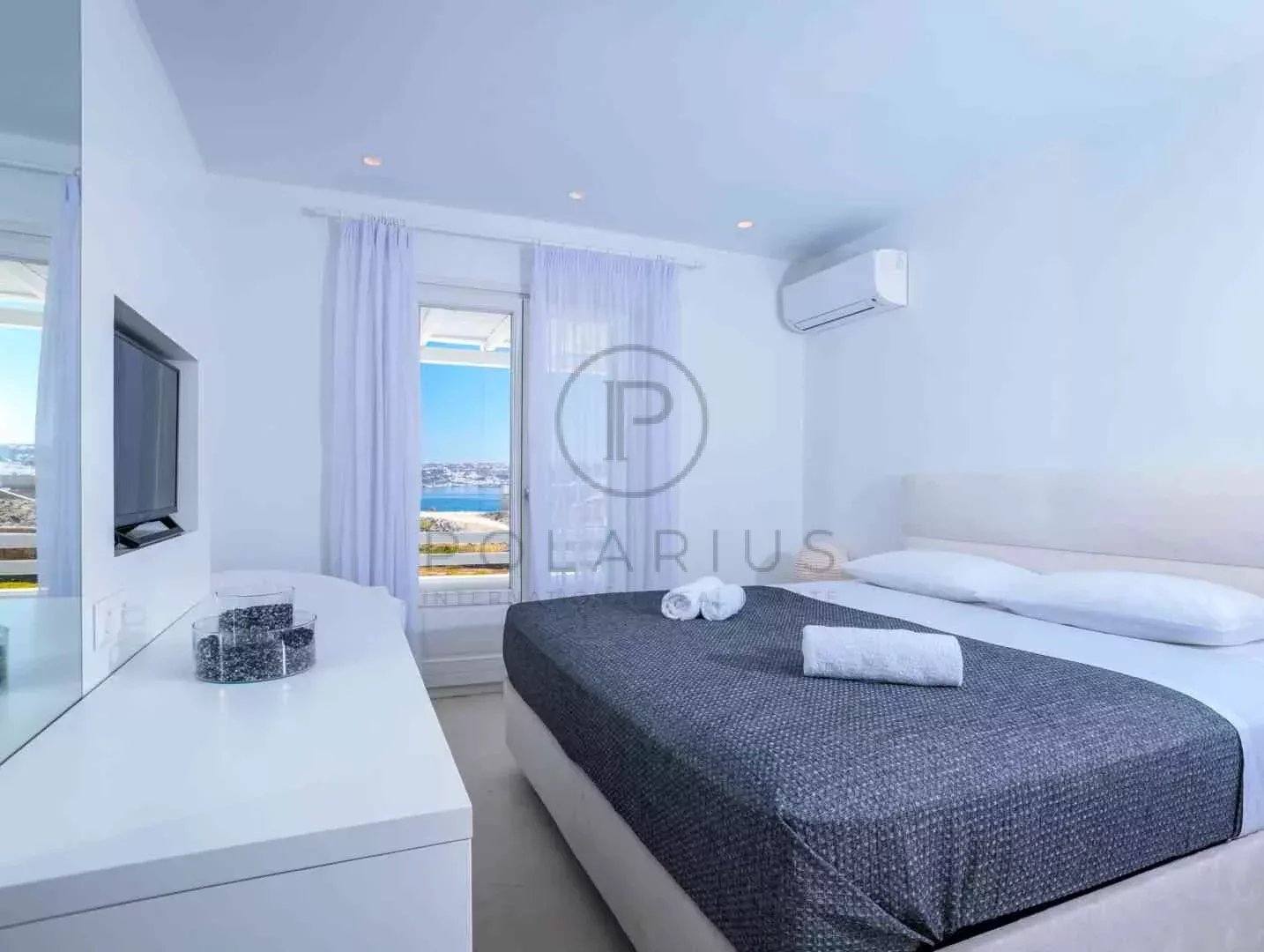 Die Villa ist eine stilvolle Widerspiegelung des kosmopolitischen Mykonos-Lebensstils, aber mit einem traditionellen Touch. Sie liegt anmutig an der imposanten Stelle von Ornos und bietet einen göttlichen Blick auf die atemberaubende Ägäis bis hin zu den Inseln Syros, Tinos und den Windmühlen von Mykonos. Ruhe, Gelassenheit, Raum und Ruhe erwarten Sie in einer makellosen Villa und doch sind Sie nur 15 Minuten von der berühmten Mykonos-Stadt sowie 15 Autominuten von Nammos, einem der vier größten Clubs der Welt, entfernt. Hier finden Sie alles, wovon Sie jemals für einen perfekten Urlaub geträumt haben.