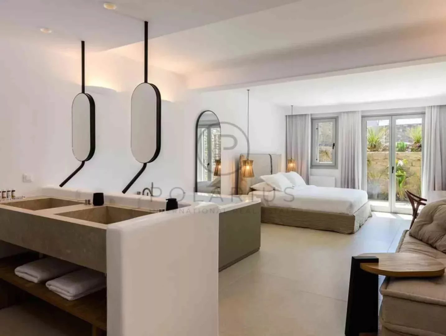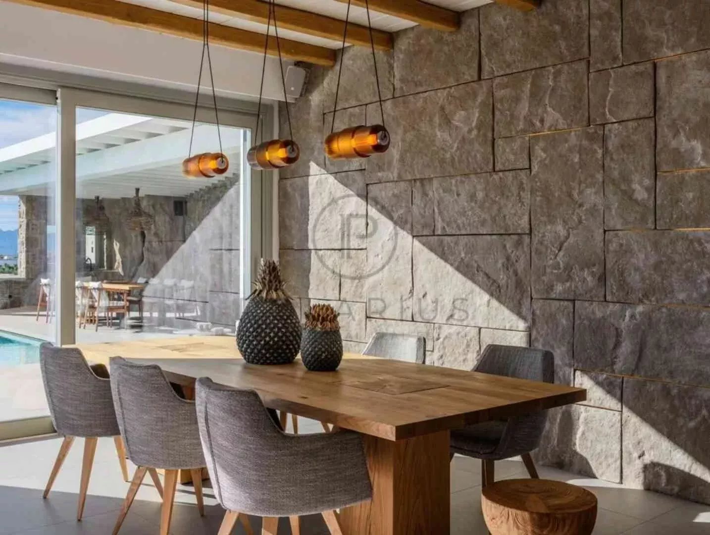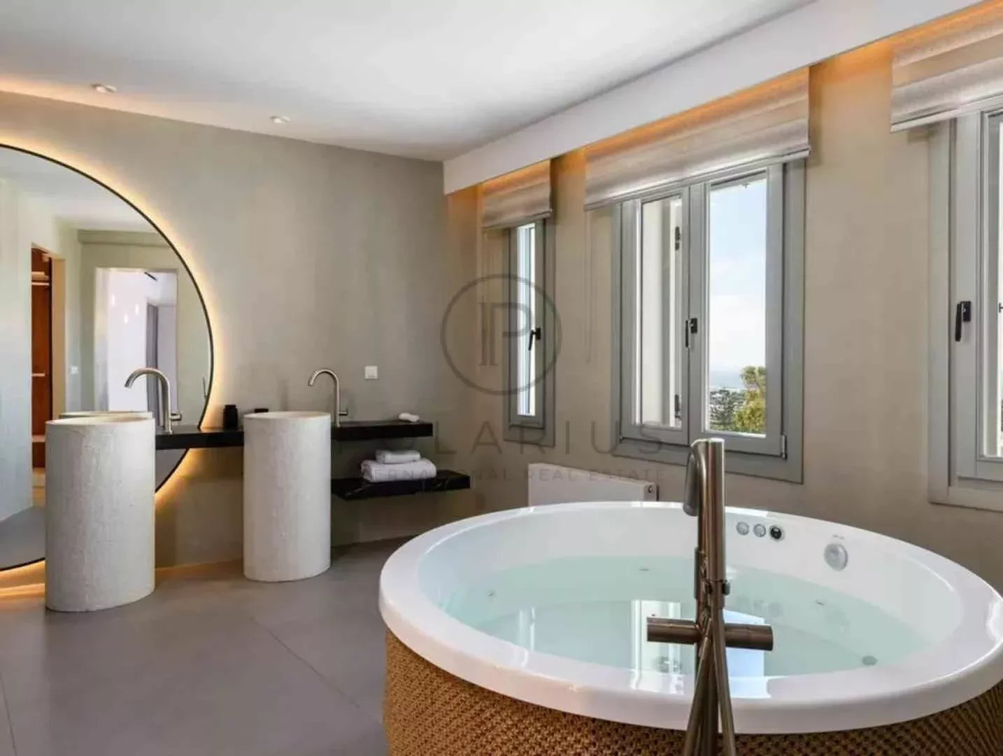 Everything is about comfort and chic. Large living, dining and entertaining areas connected with covered and sunny terraces, lounges, offer the chance to enjoy a sensational Cycladic sunset along with a fine glass of wine.