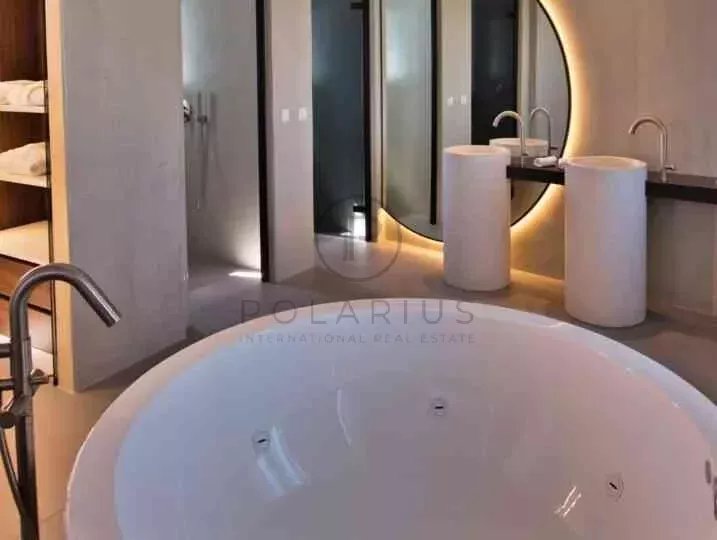 Inside a top-range sleek minimalistic kitchen area is fully fitted. The fabulous bedrooms are beautifully styled and finished with Jacuzzis, ensuite bathrooms, walk-in closets and renowned designer furniture. Worth mentioning a large gym-entertainment room, and garage in the basement.