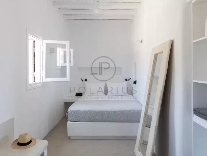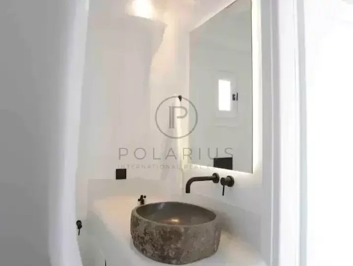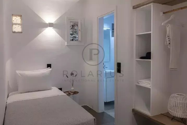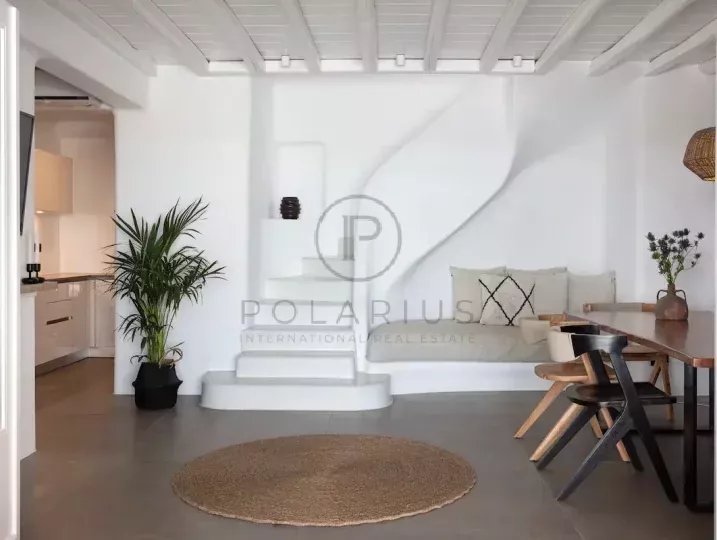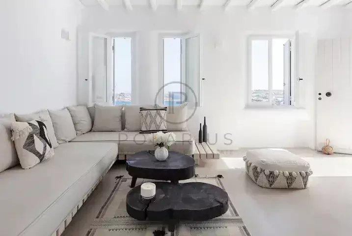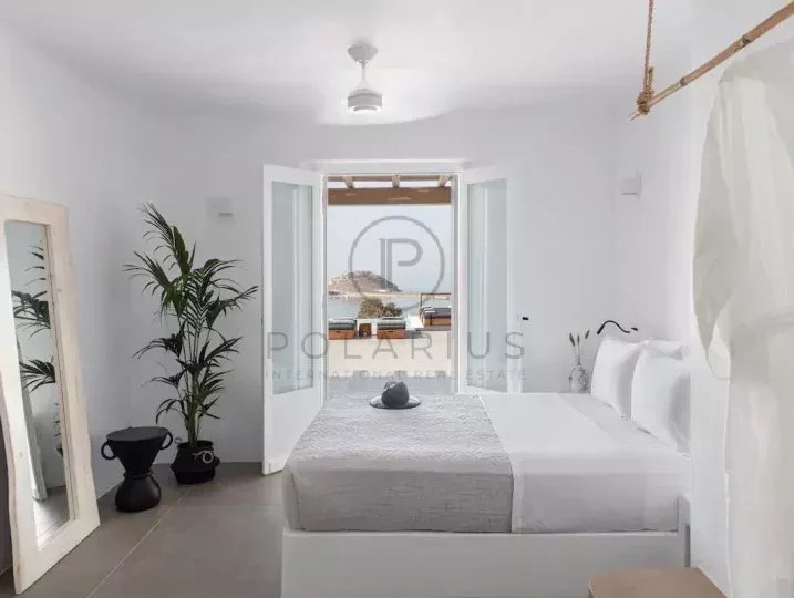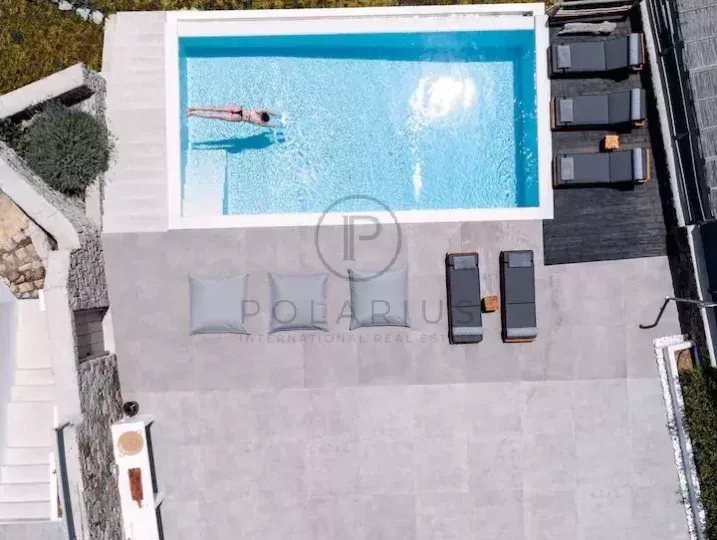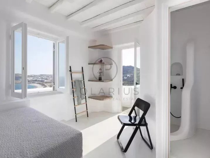 La villa de cinco dormitorios está en consonancia con la arquitectura local de Miconos e incluye todos los lujos.