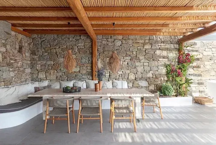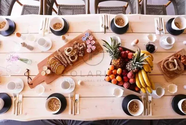 de un estilo de vida contemporáneo. Es el alojamiento perfecto tanto para grupos de amigos como para familias. Formas limpias y una mezcla de muebles hechos a medida por artesanos locales y piezas de diseño moderno, dan un aire fresco y auténtico a la espaciosa villa. La decoración está cuidadosamente seleccionada, sin pretensiones y elegante con un encantador toque personal, pensada para que se sienta como en casa, lejos de casa.