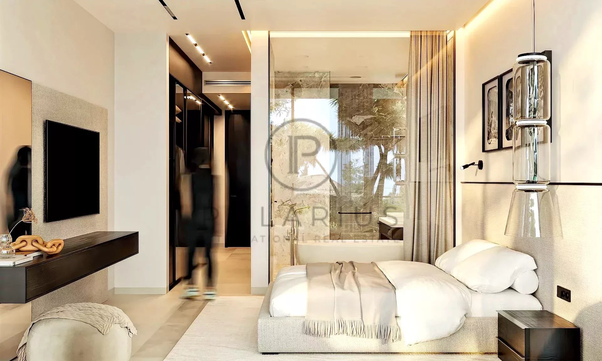 • Comodidades modernas: cocina de diseño totalmente equipada con isla, aire acondicionado oculto, accesorios de baño de primera calidad, muebles hechos a medida y un sofisticado esquema de iluminación.