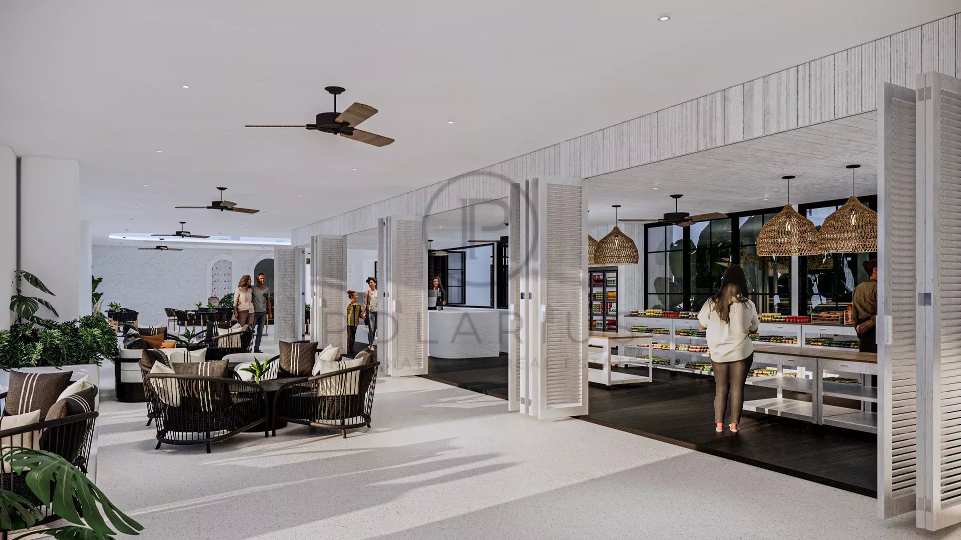 El edificio ofrece una variedad de comodidades de primer nivel, que incluyen un restaurante, cafetería, gimnasio totalmente equipado, espacios de trabajo compartido, club infantil para familias con niños y una piscina infinita frente al mar para todos.