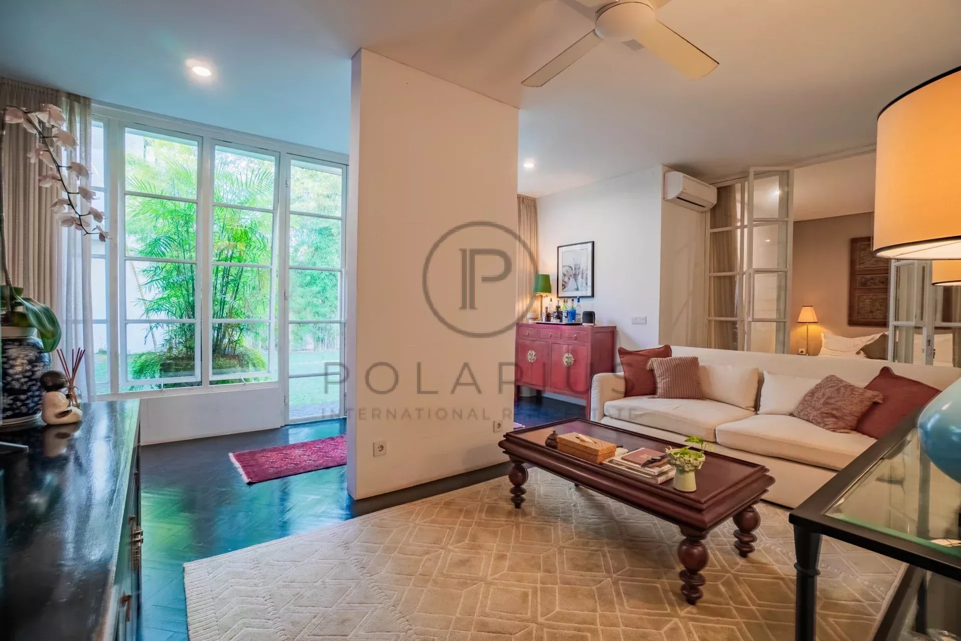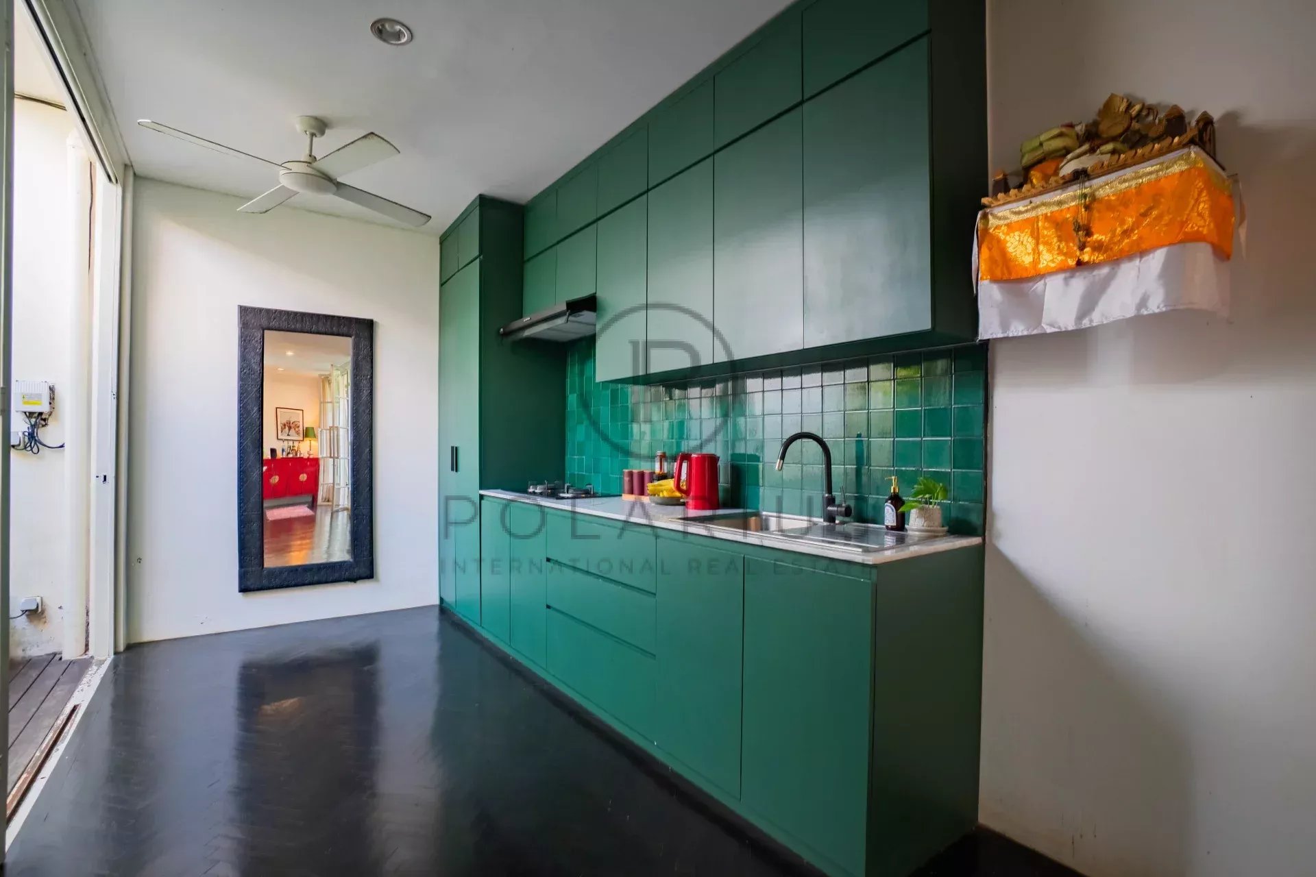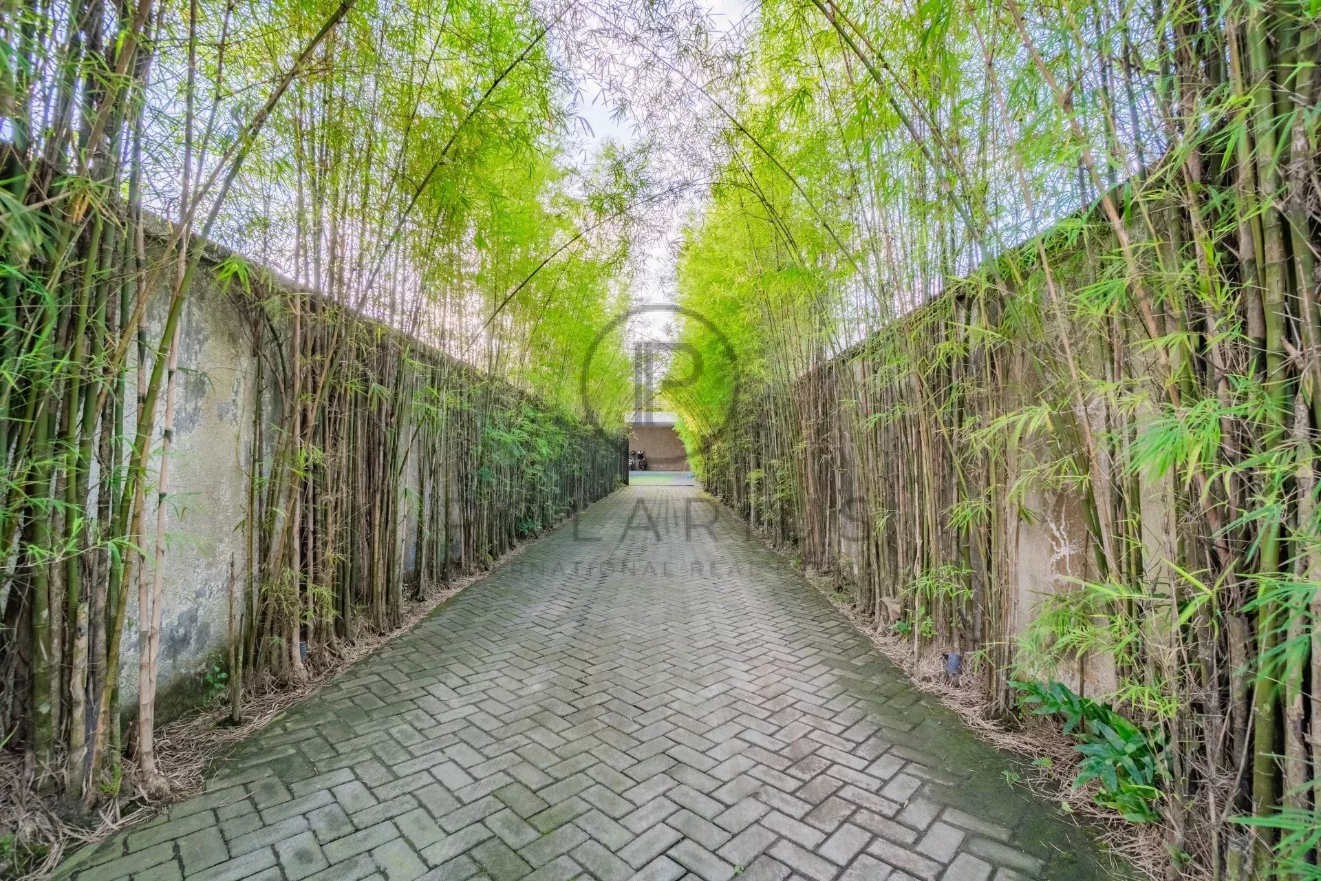 Édifiée en 2015 par ses propriétaires actuels, la propriété s’étend sur 1 131 m² de terrain en pleine propriété, auxquels s’ajoutent 500 m² de jardins paysagers loués (bail jusqu’en 2035, renouvelable). Nichée au bord des rizières et accessible par une allée privée bordée de bambous, elle garantit une intimité totale tout en restant proche des écoles internationales, centres de bien-être, plages de surf et restaurants haut de gamme.