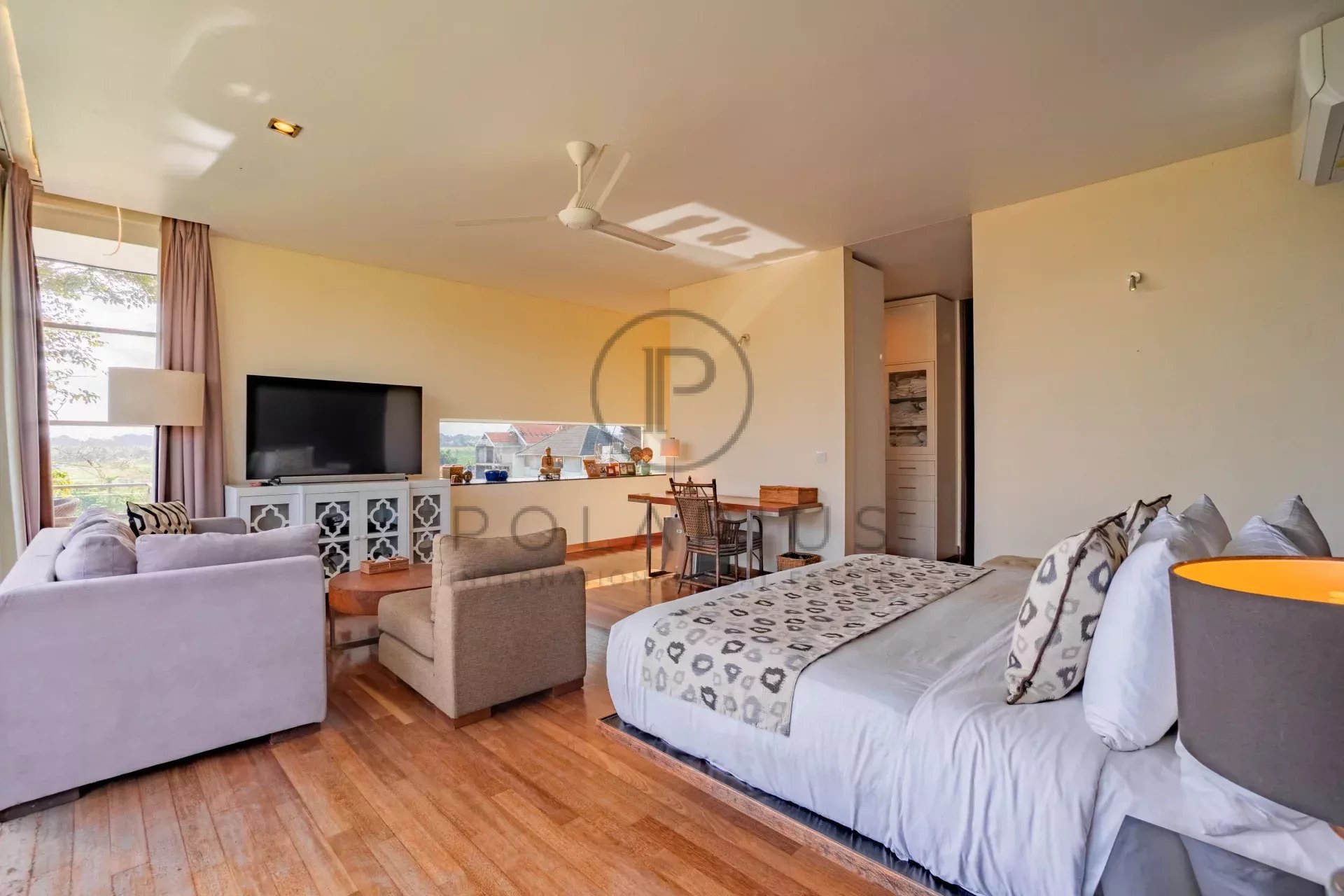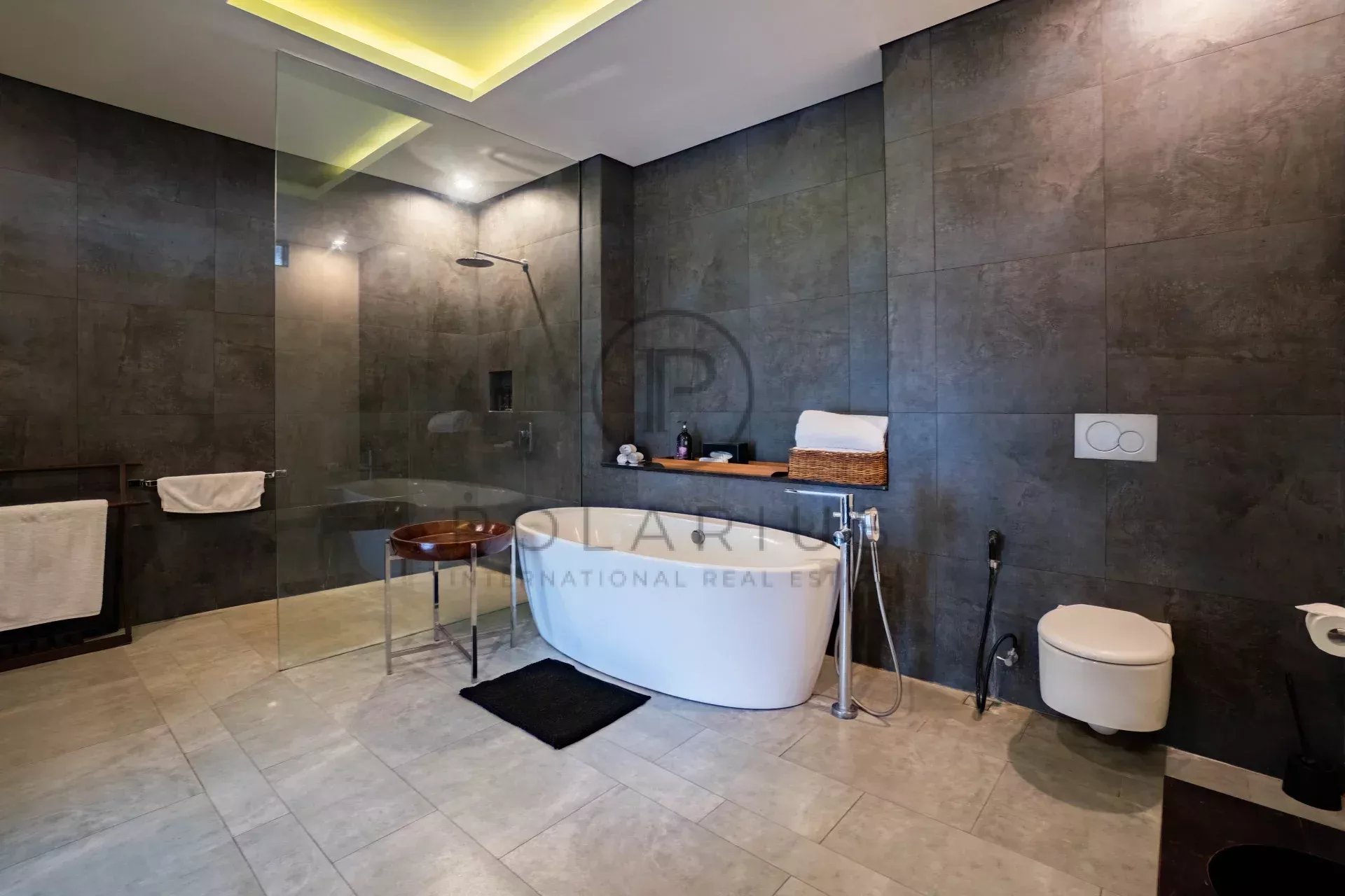 La villa comprend quatre chambres spacieuses et lumineuses, dont une somptueuse suite parentale à l’étage offrant une vue panoramique sur les rizières, deux dressings et une salle de bain élégante aux détails inspirés des spas. Deux suites d’invités raffinées au rez-de-chaussée s’ouvrent sur des terrasses privées avec vue sur les jardins.