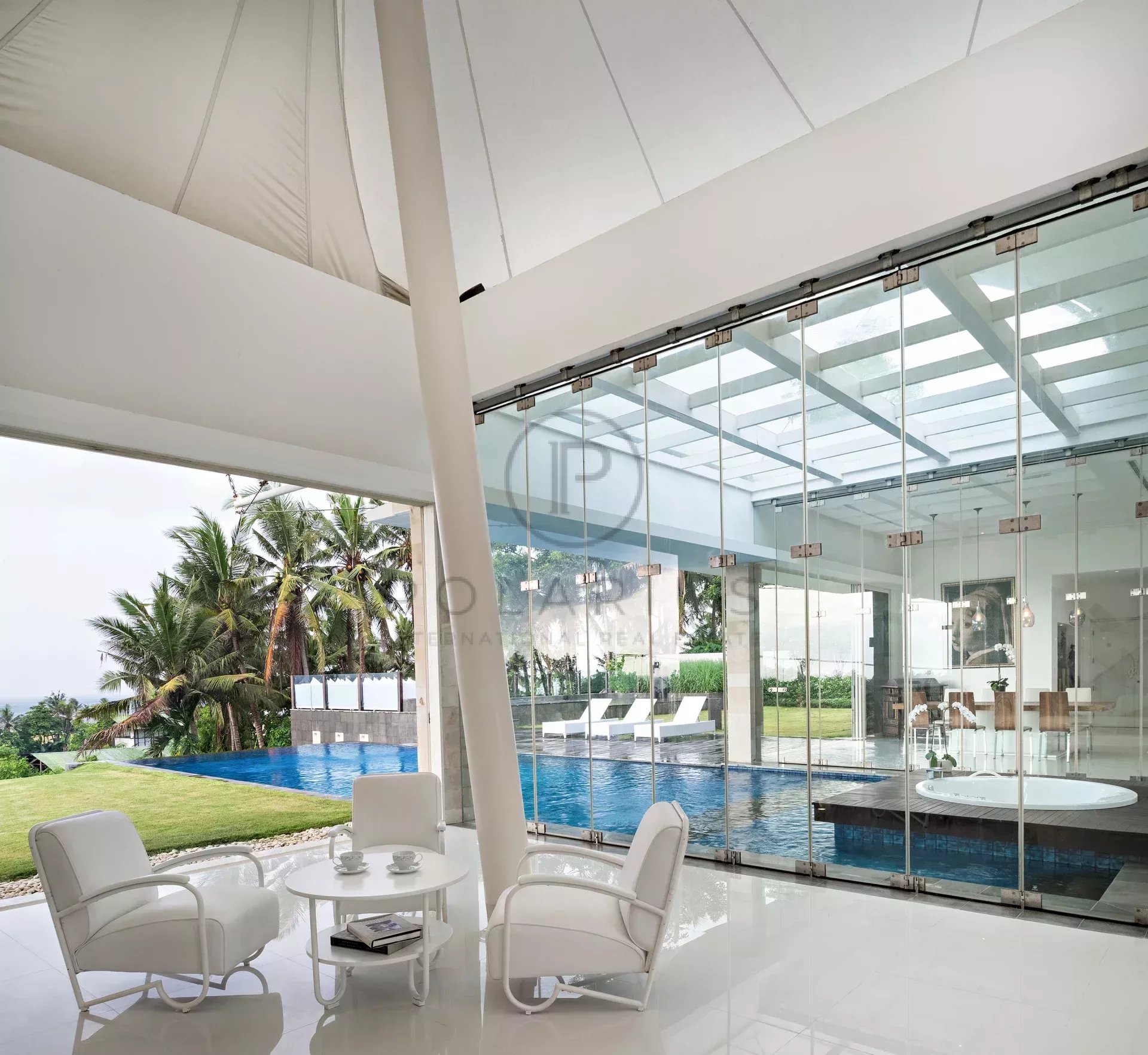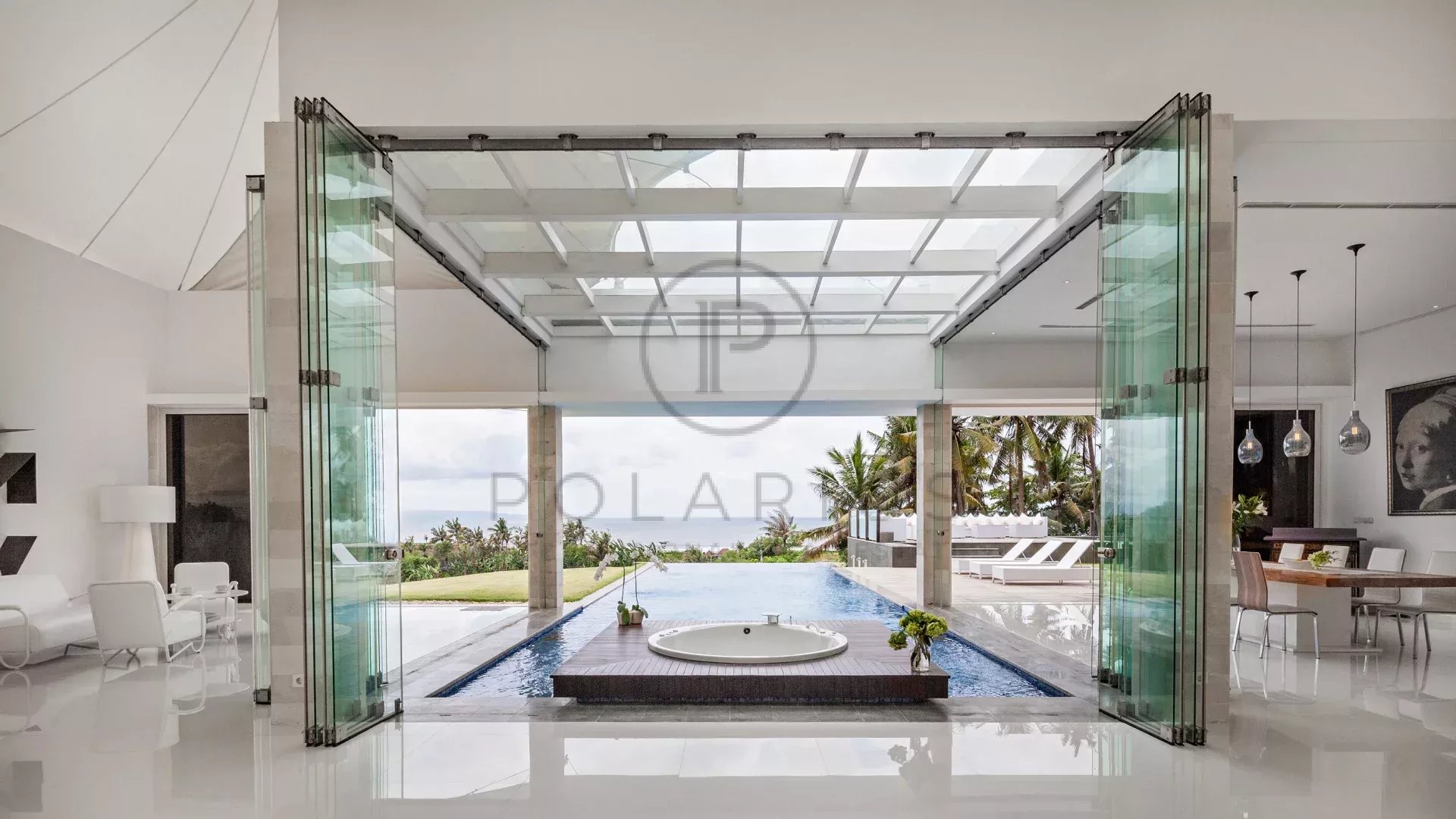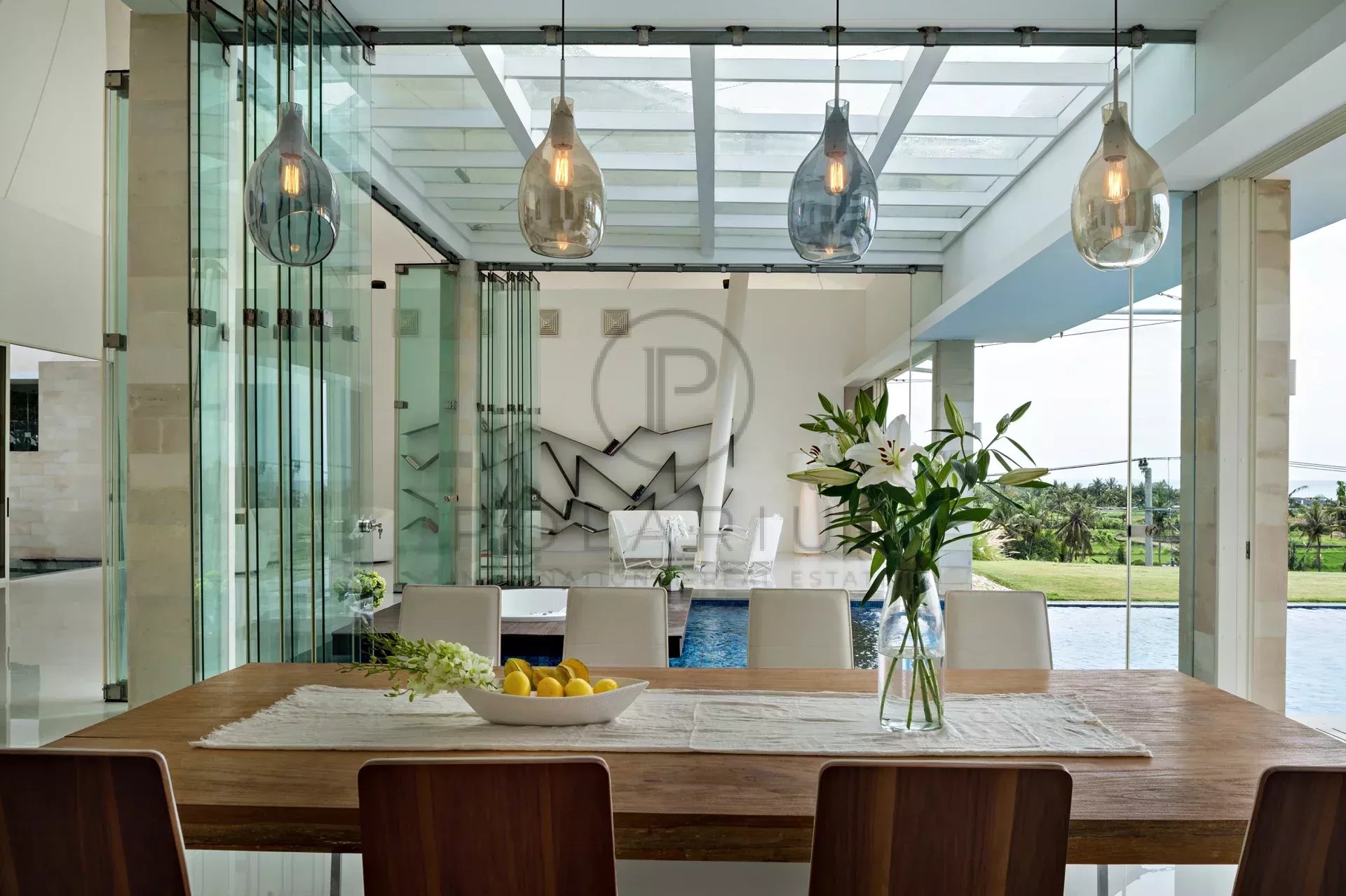 D'immenses fenêtres en verre offrent une vue panoramique sur le magnifique paysage balinais, vous permettant de vous réveiller chaque matin avec la vue merveilleuse de la verdure luxuriante et de l'océan.