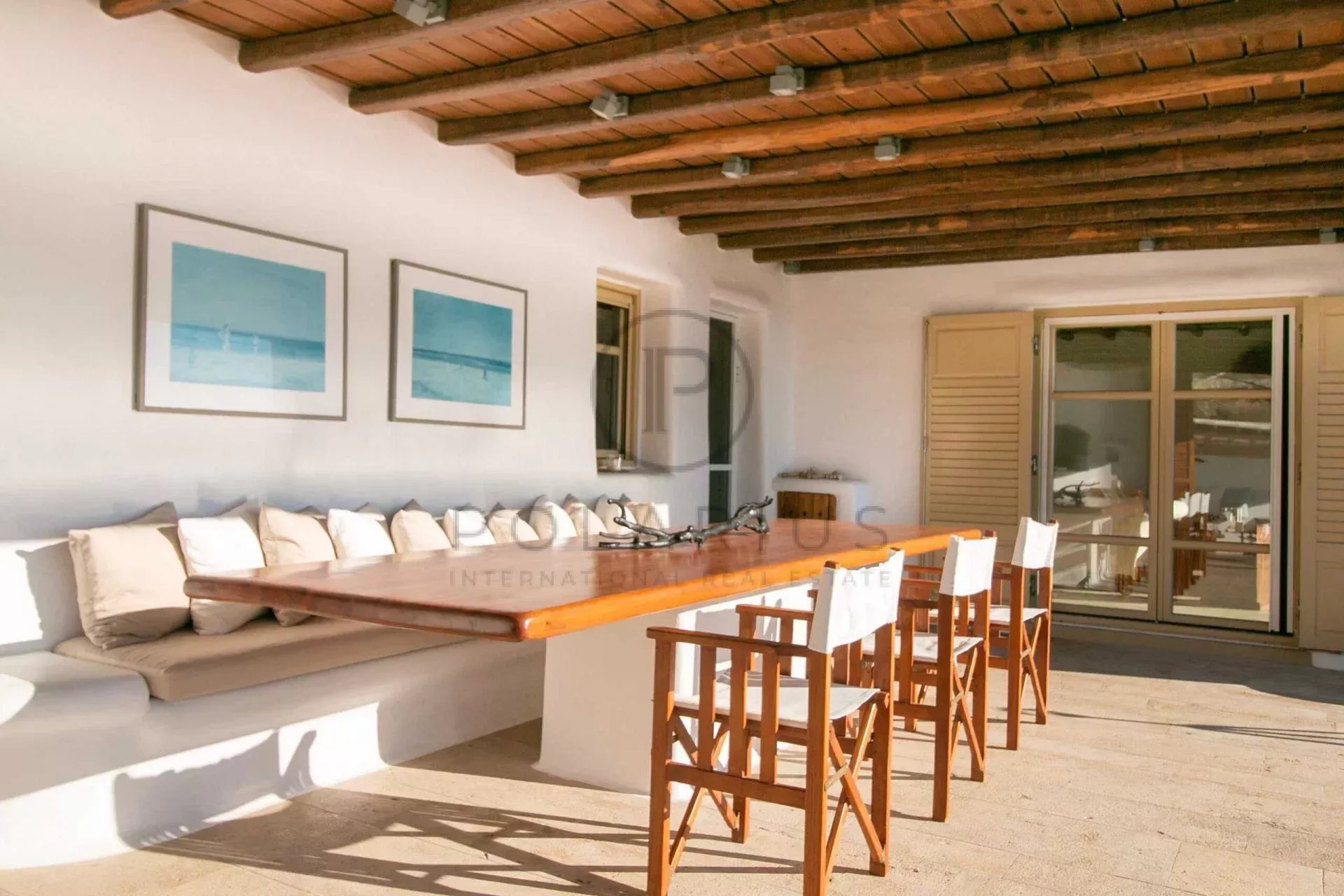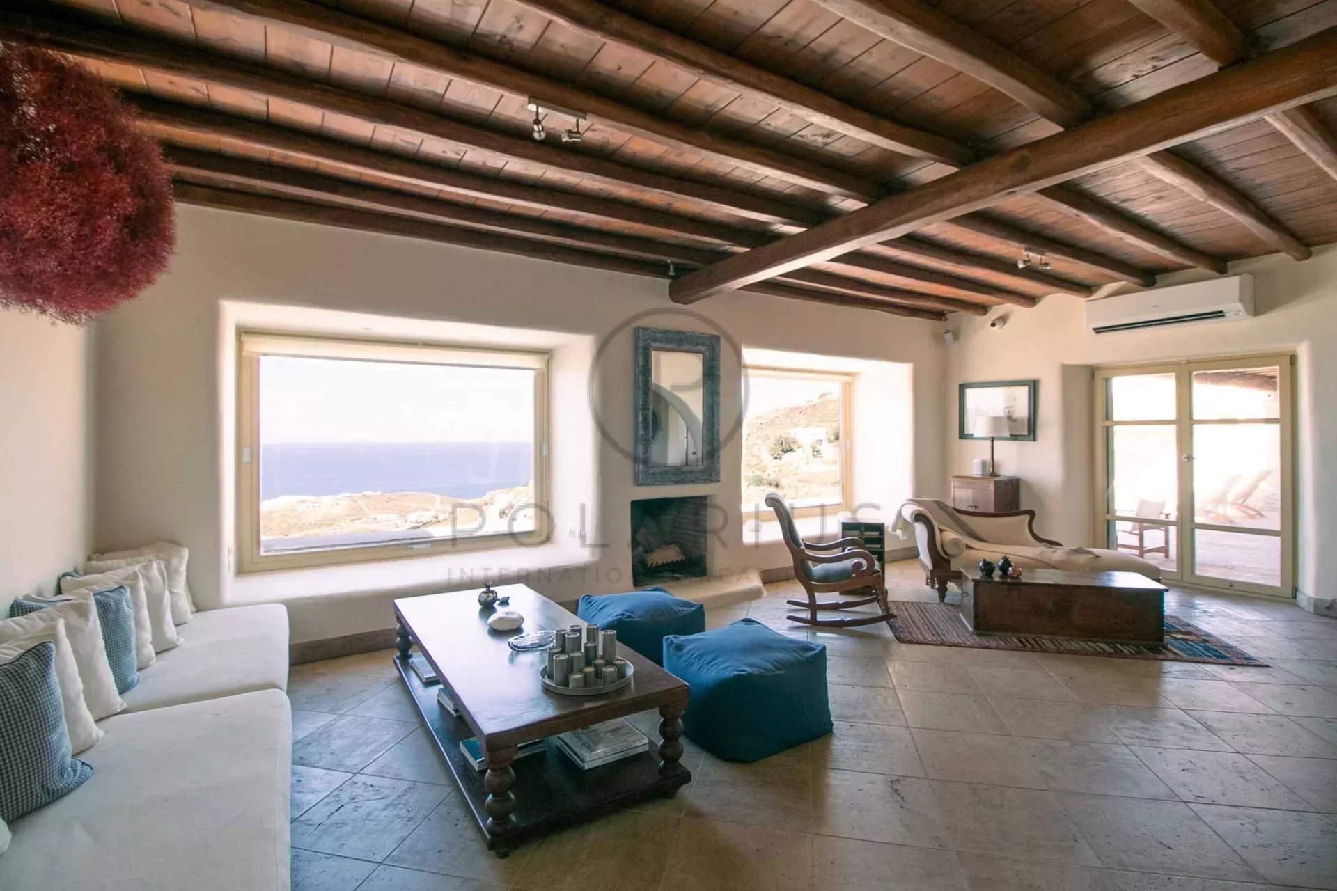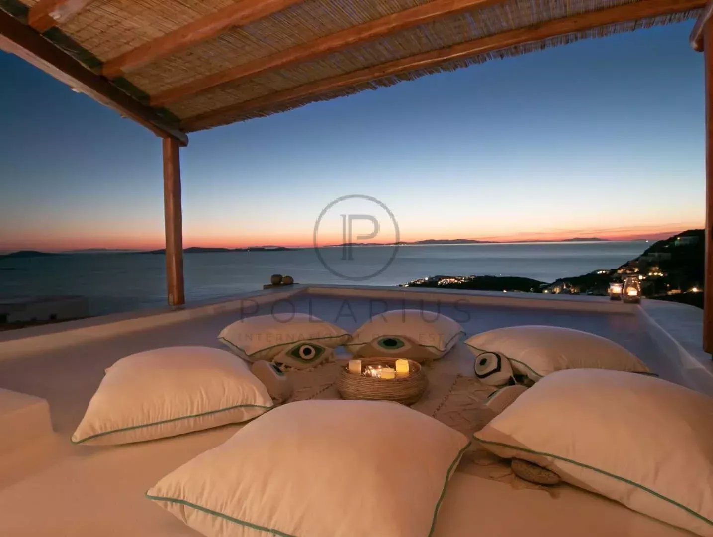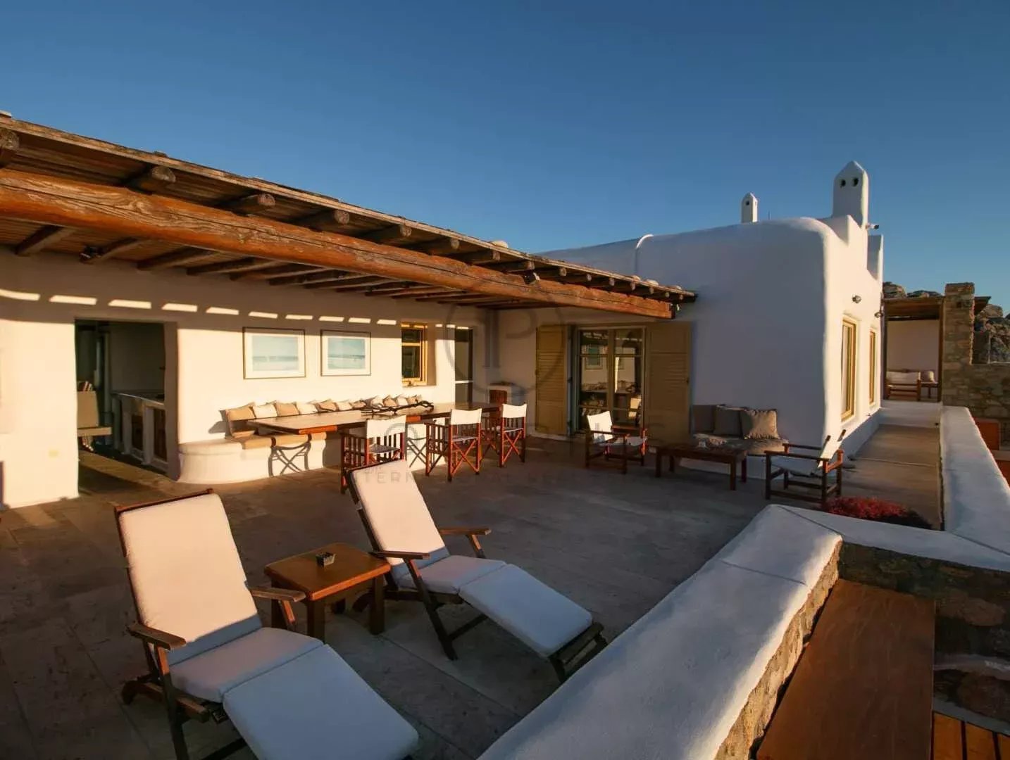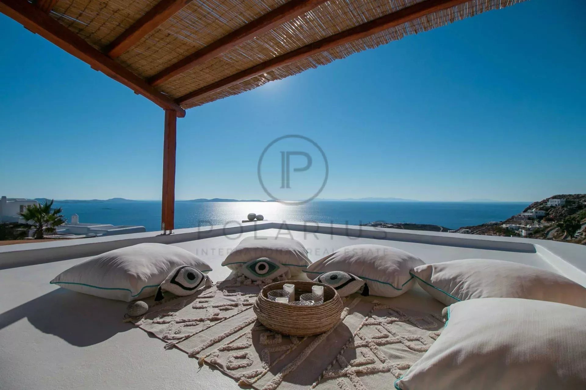 Situata nella zona privilegiata di Tourlos, a 6 minuti di auto dalla città di Mykonos, la villa fa parte di un complesso di due ville con eccezionale vista sul mare e sul tramonto.
