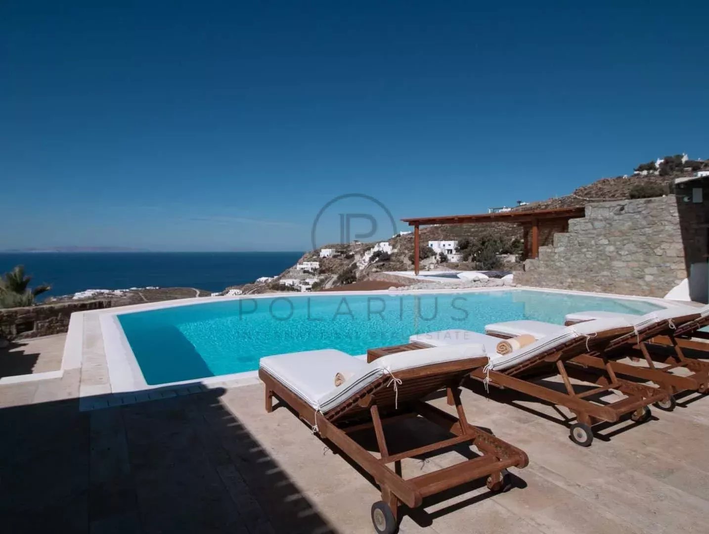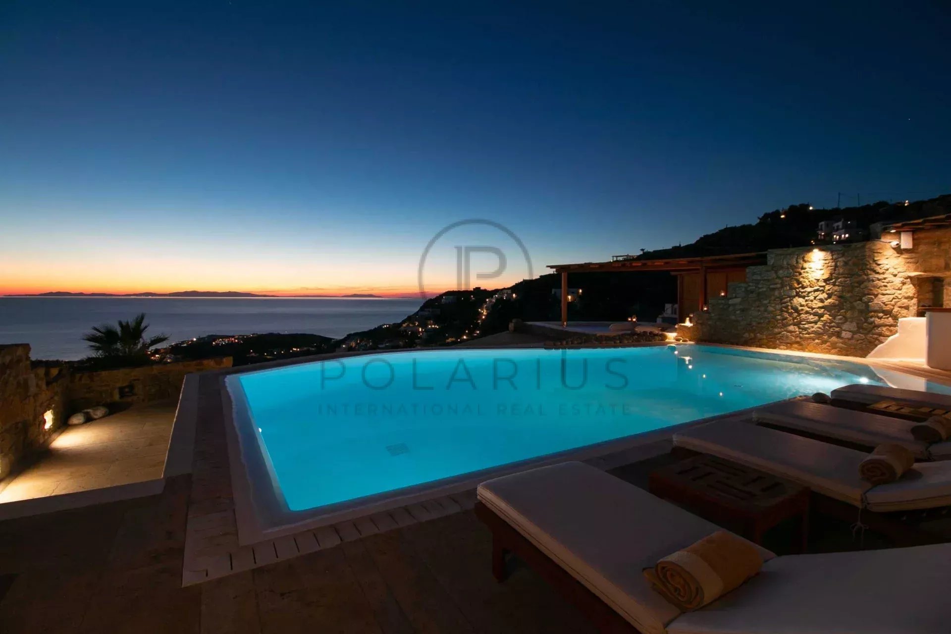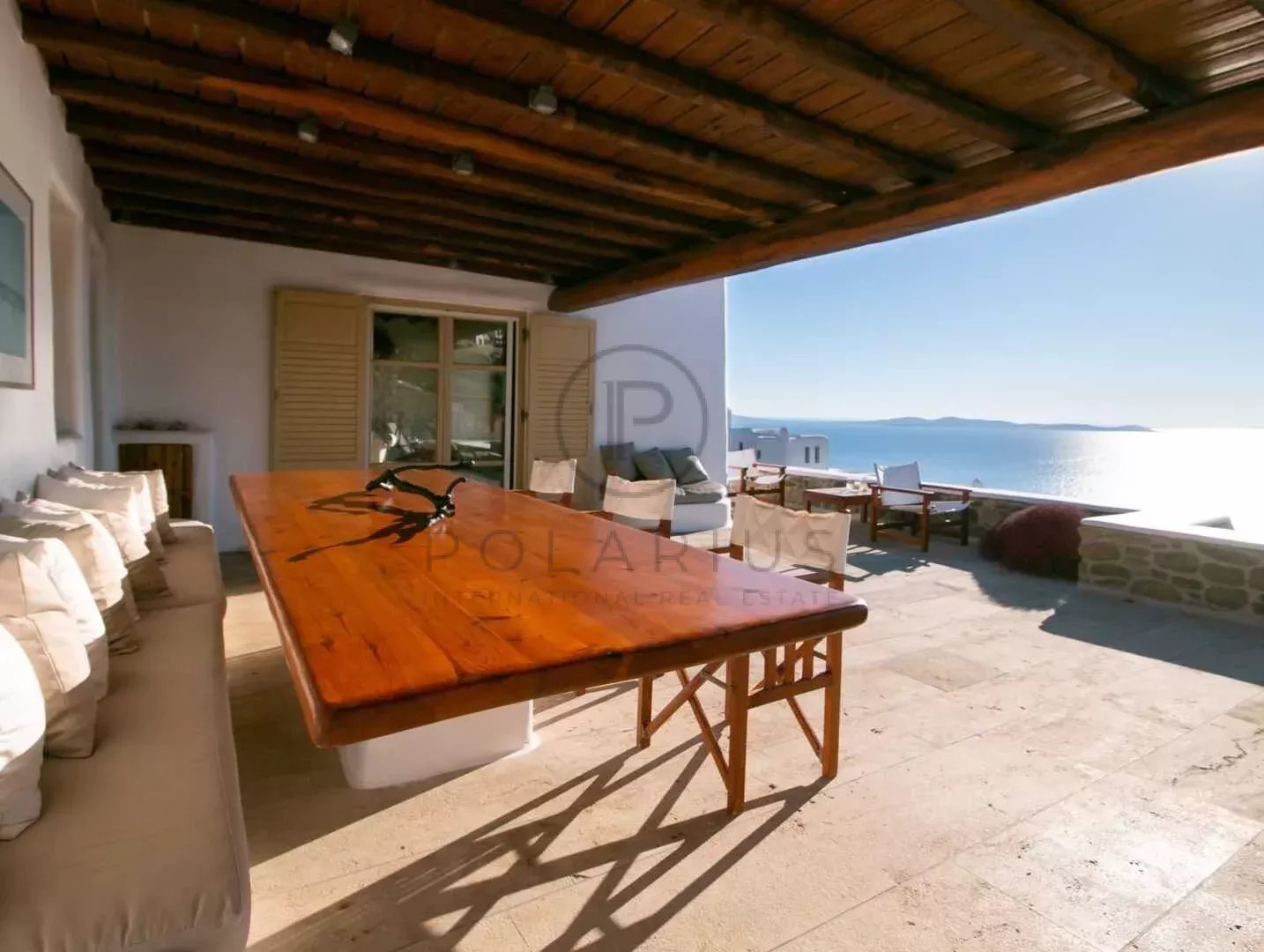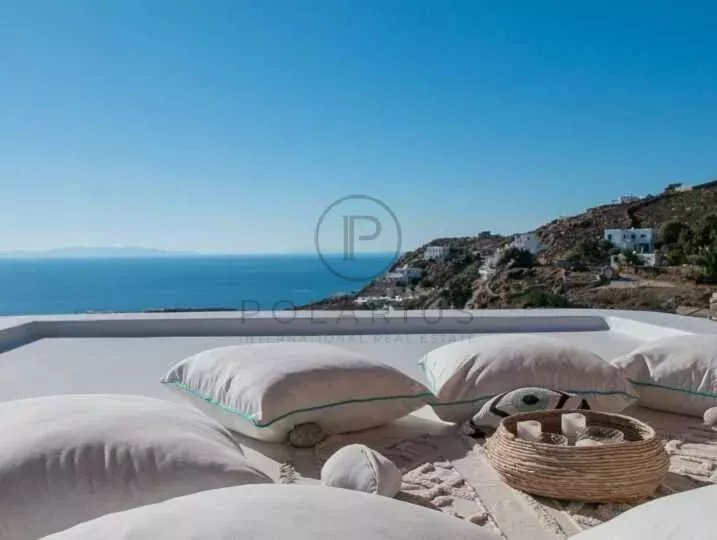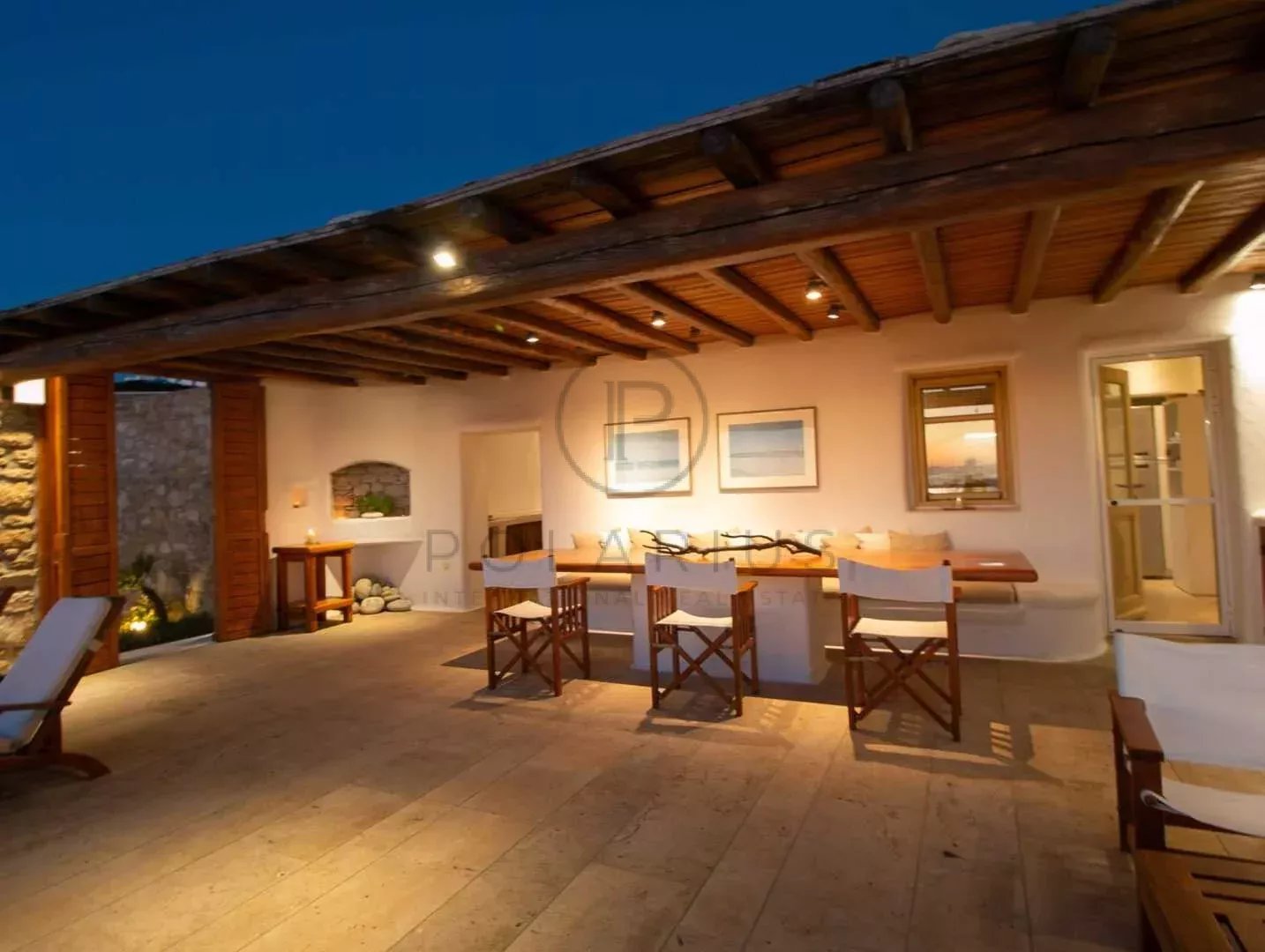 Situata nella zona privilegiata di Tourlos, a 6 minuti di auto dalla città di Mykonos, la villa fa parte di un complesso di due ville con eccezionale vista sul mare e sul tramonto.
