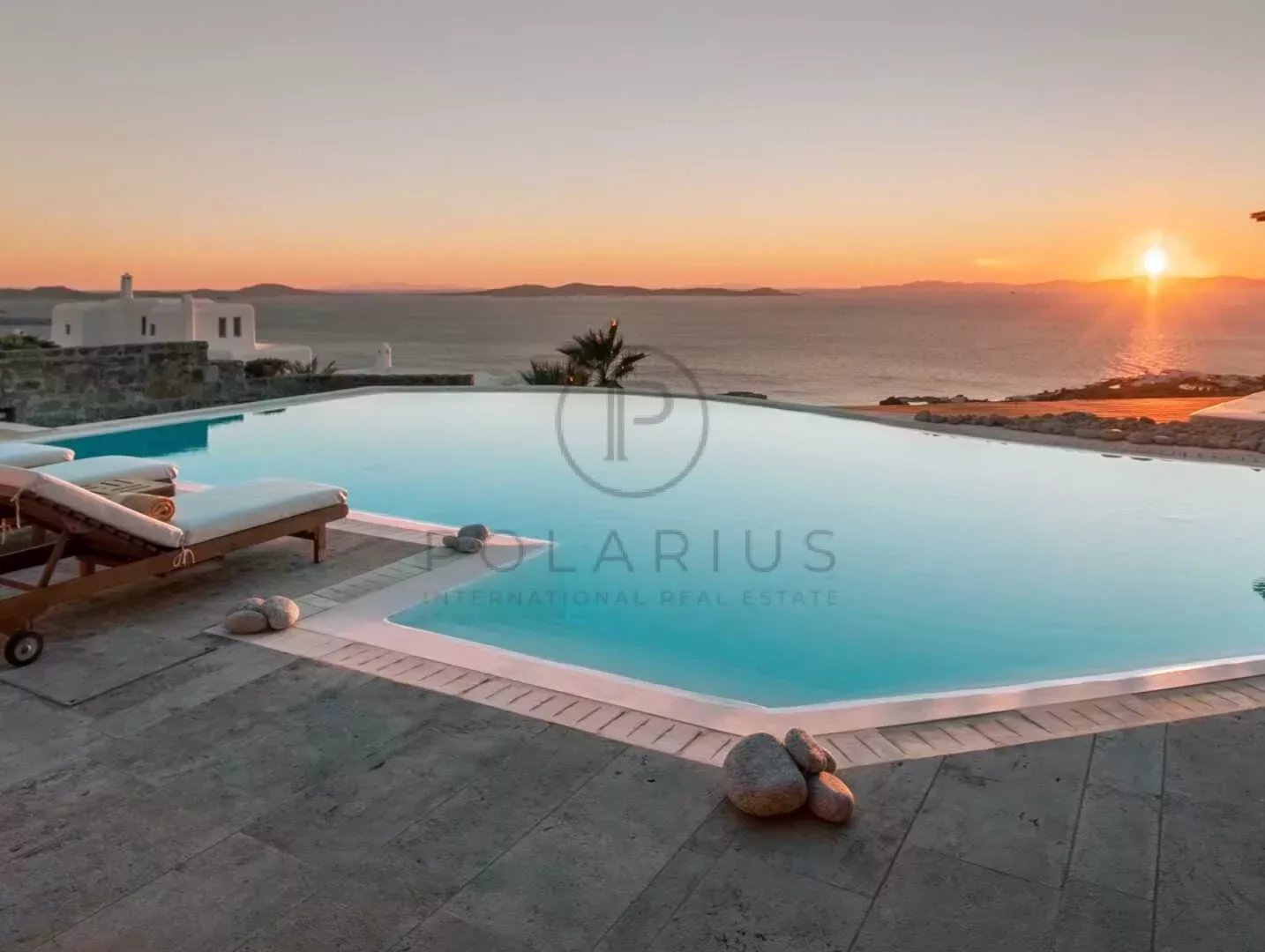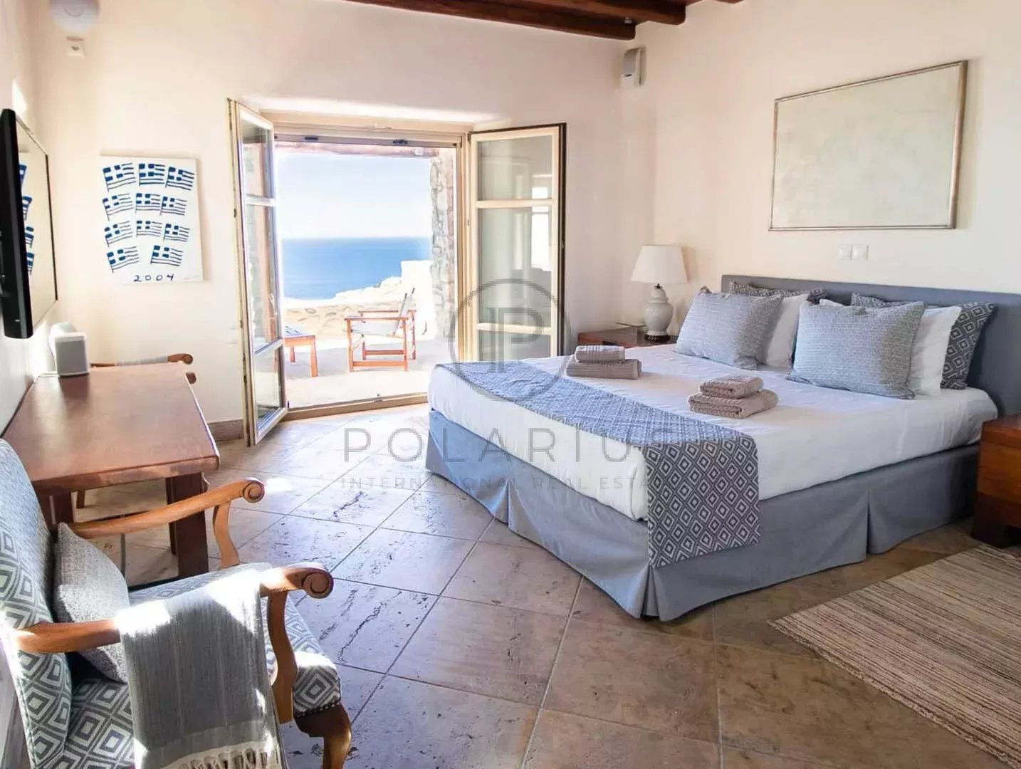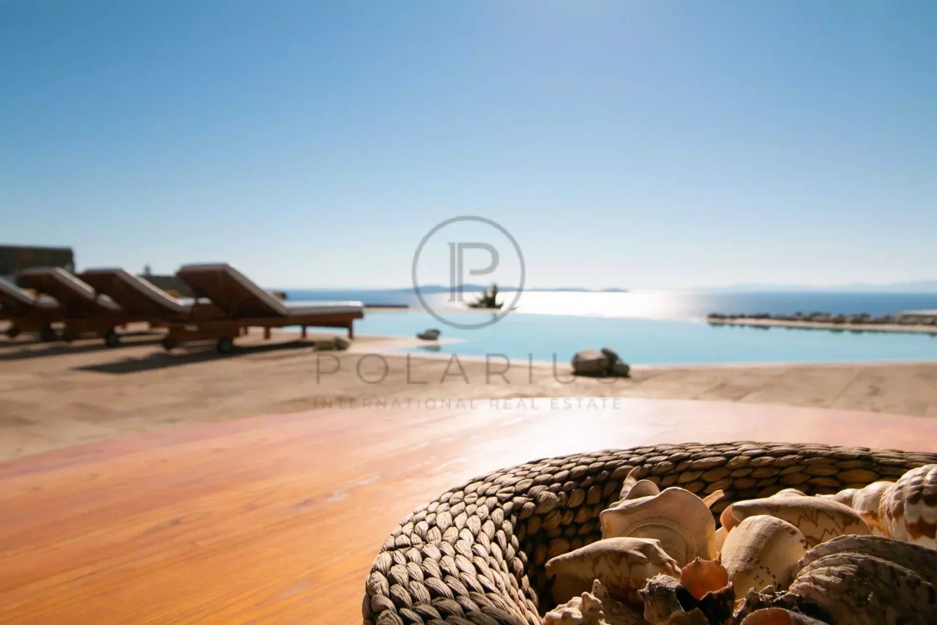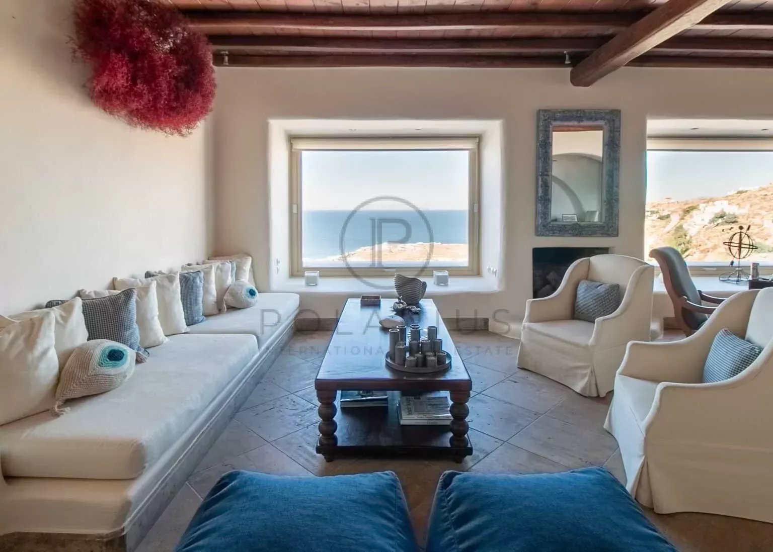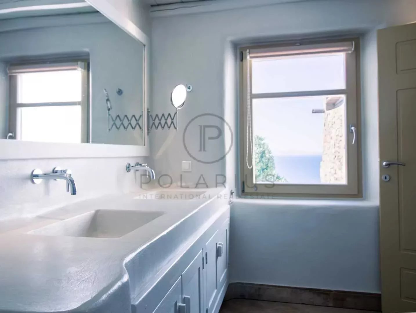 Situata nella zona privilegiata di Tourlos, a 6 minuti di auto dalla città di Mykonos, la villa fa parte di un complesso di due ville con eccezionale vista sul mare e sul tramonto.