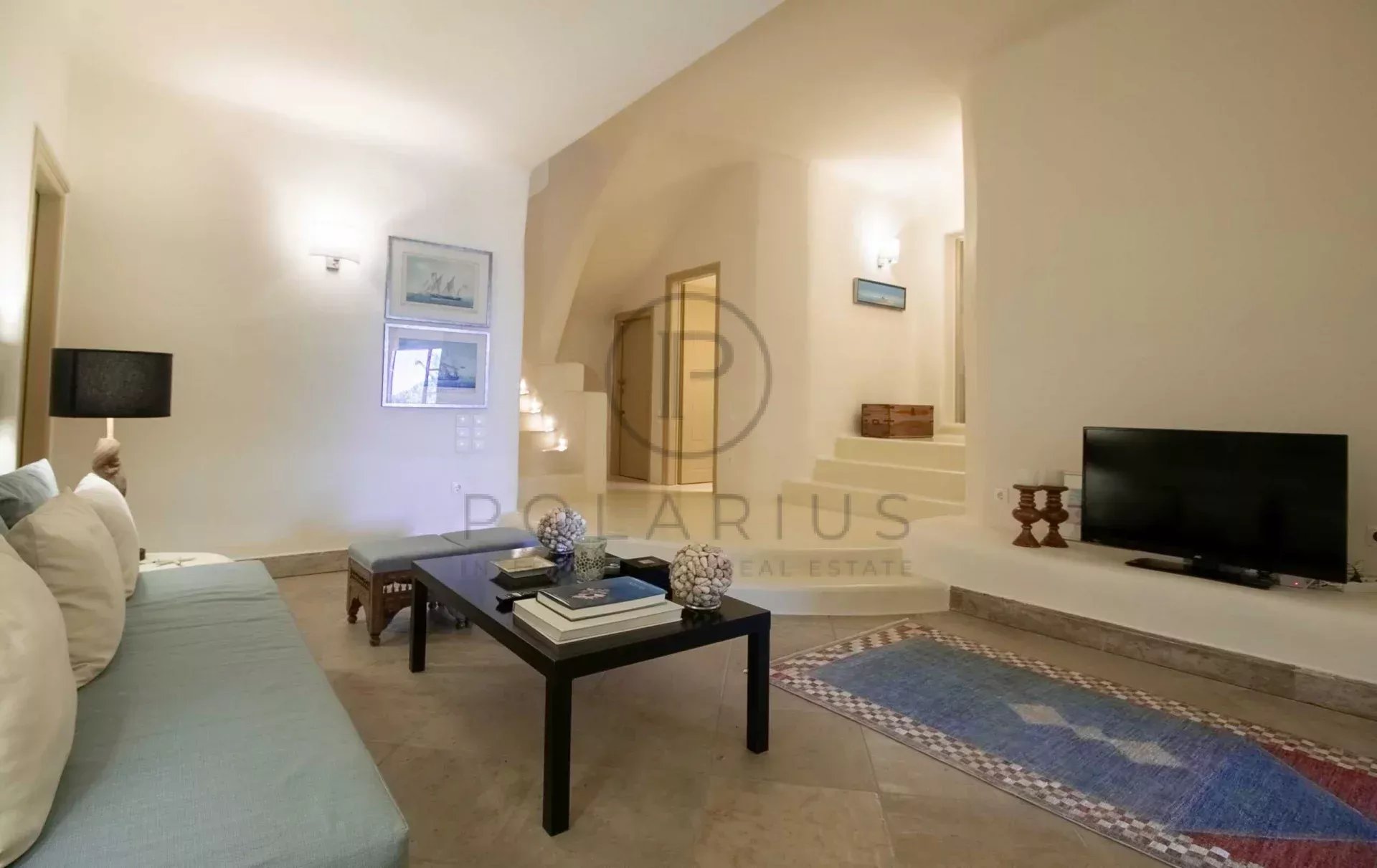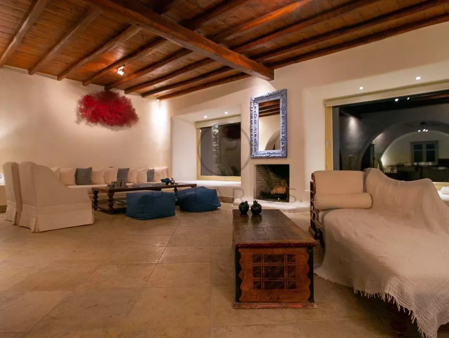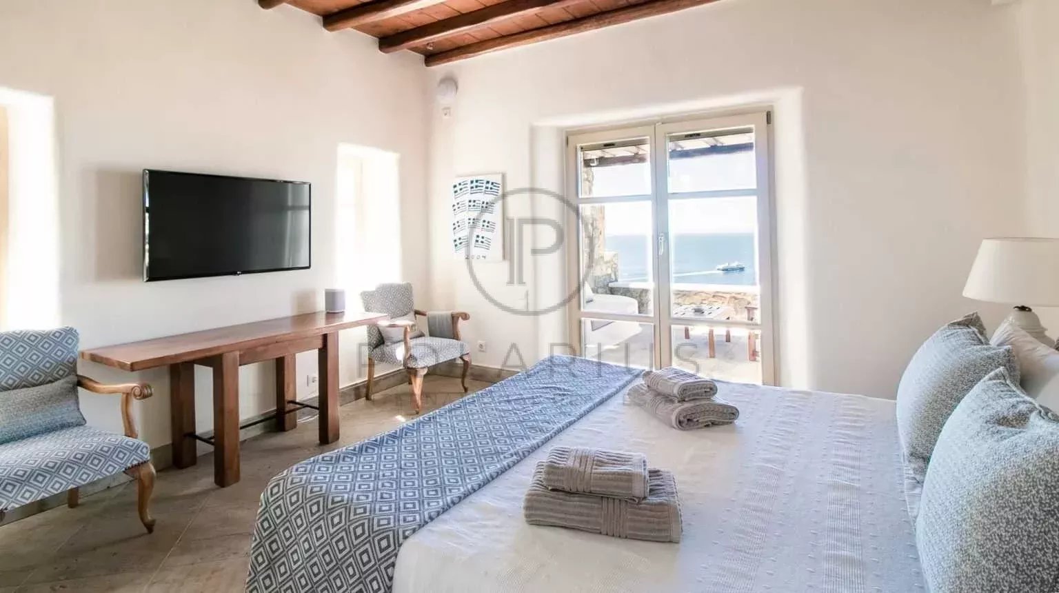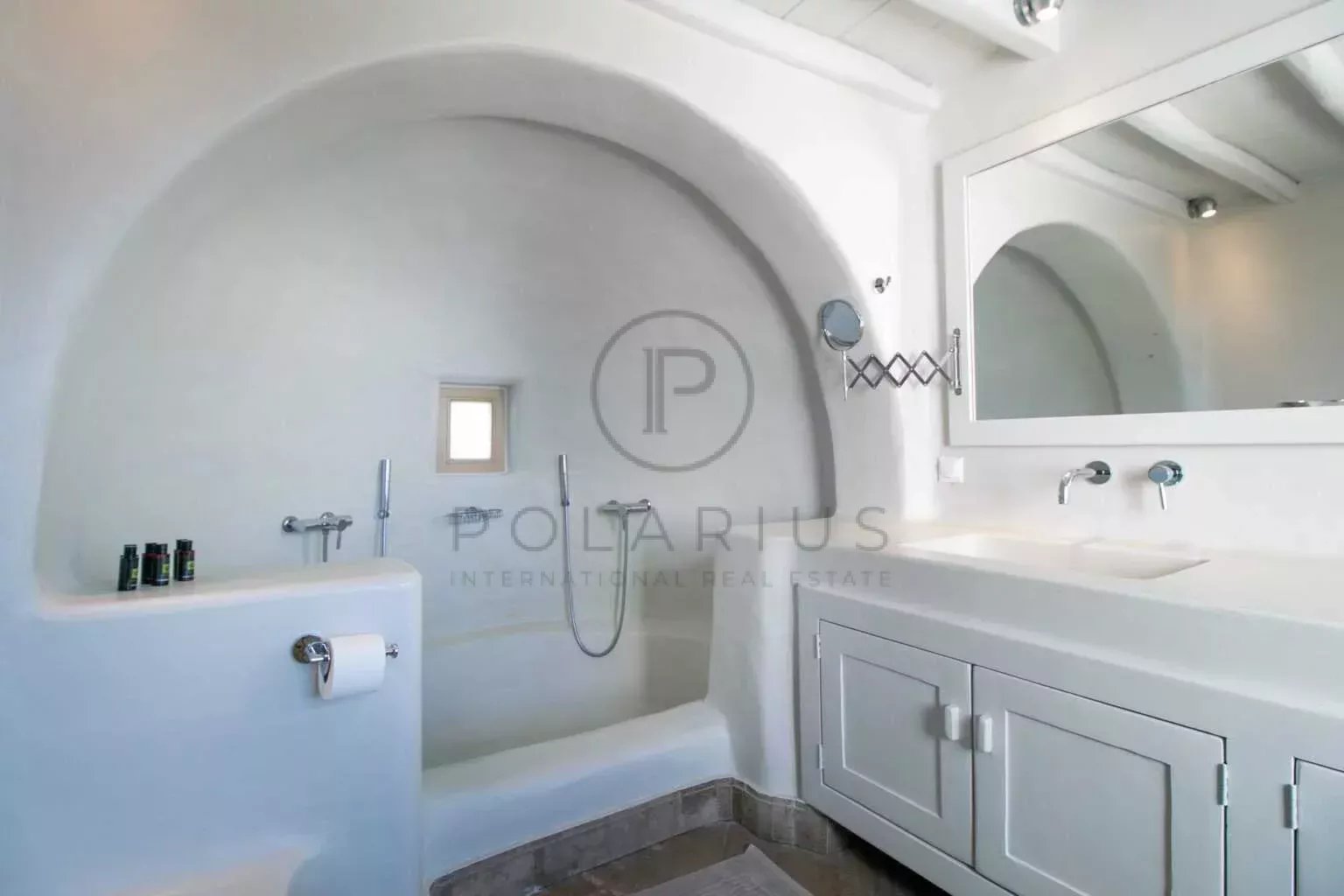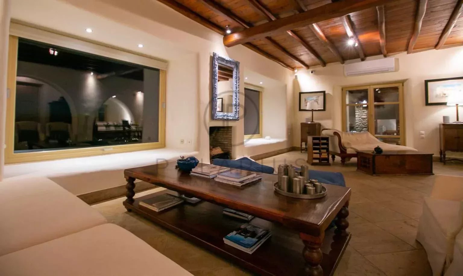 Situata nella zona privilegiata di Tourlos, a 6 minuti di auto dalla città di Mykonos, la villa fa parte di un complesso di due ville con eccezionale vista sul mare e sul tramonto.