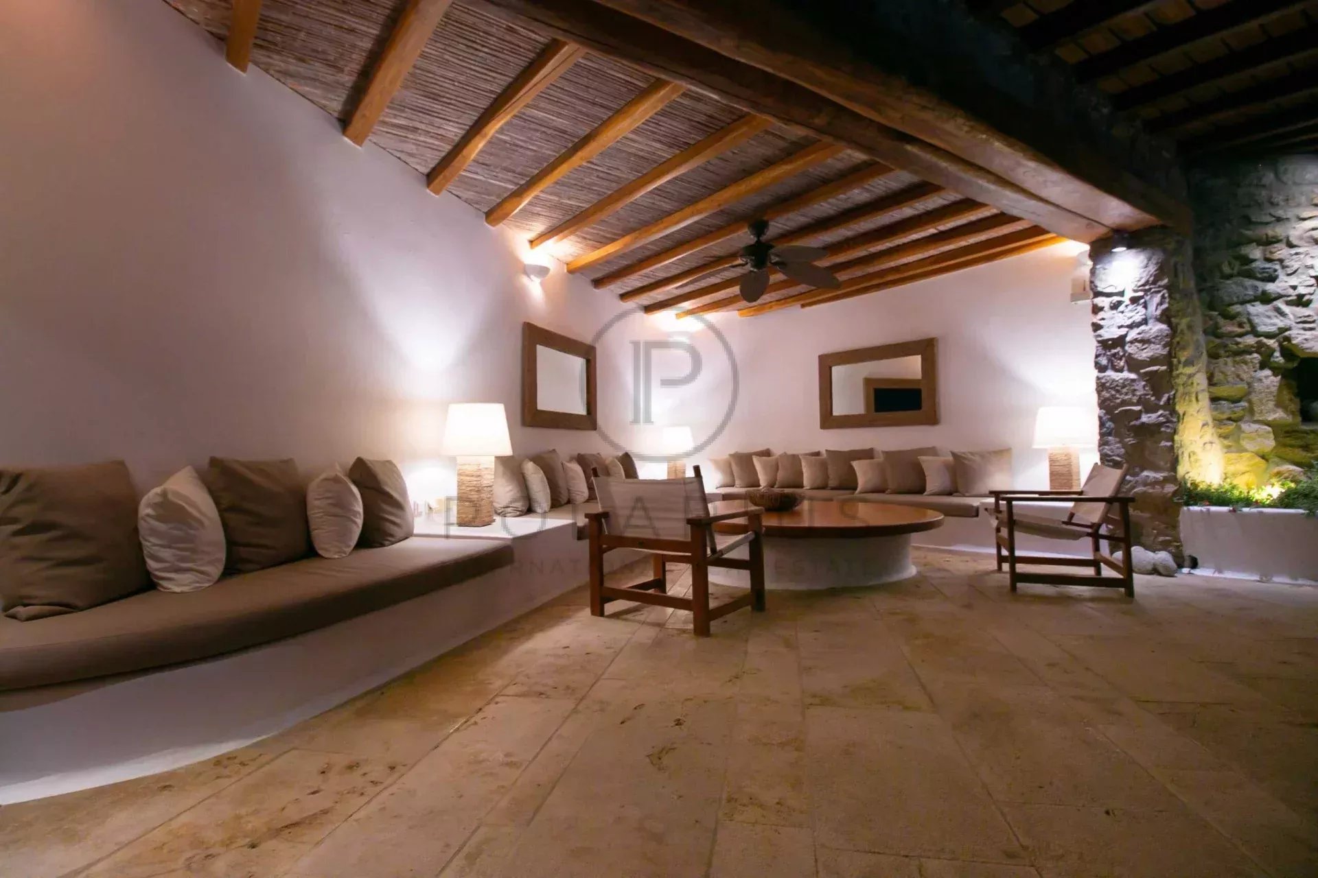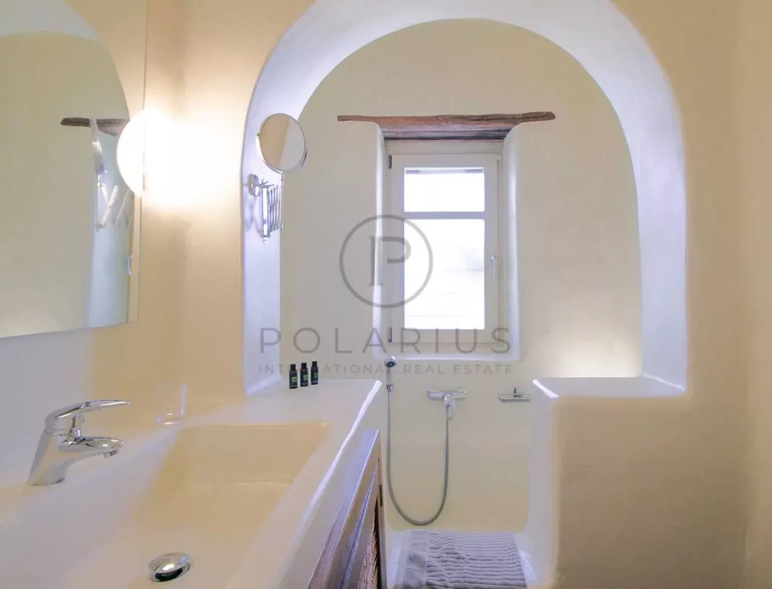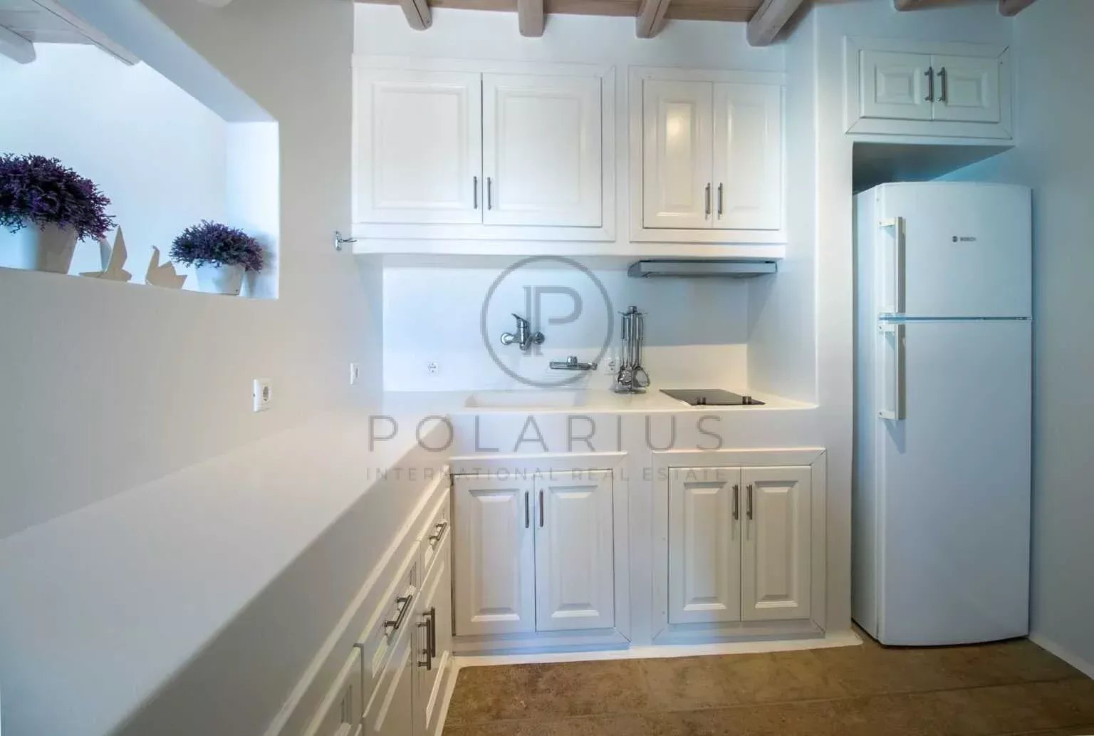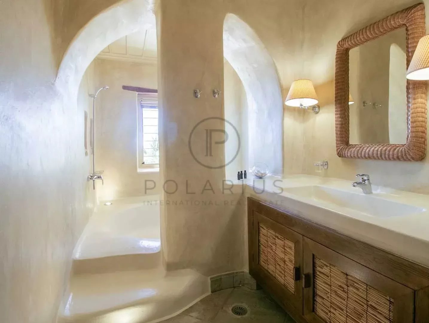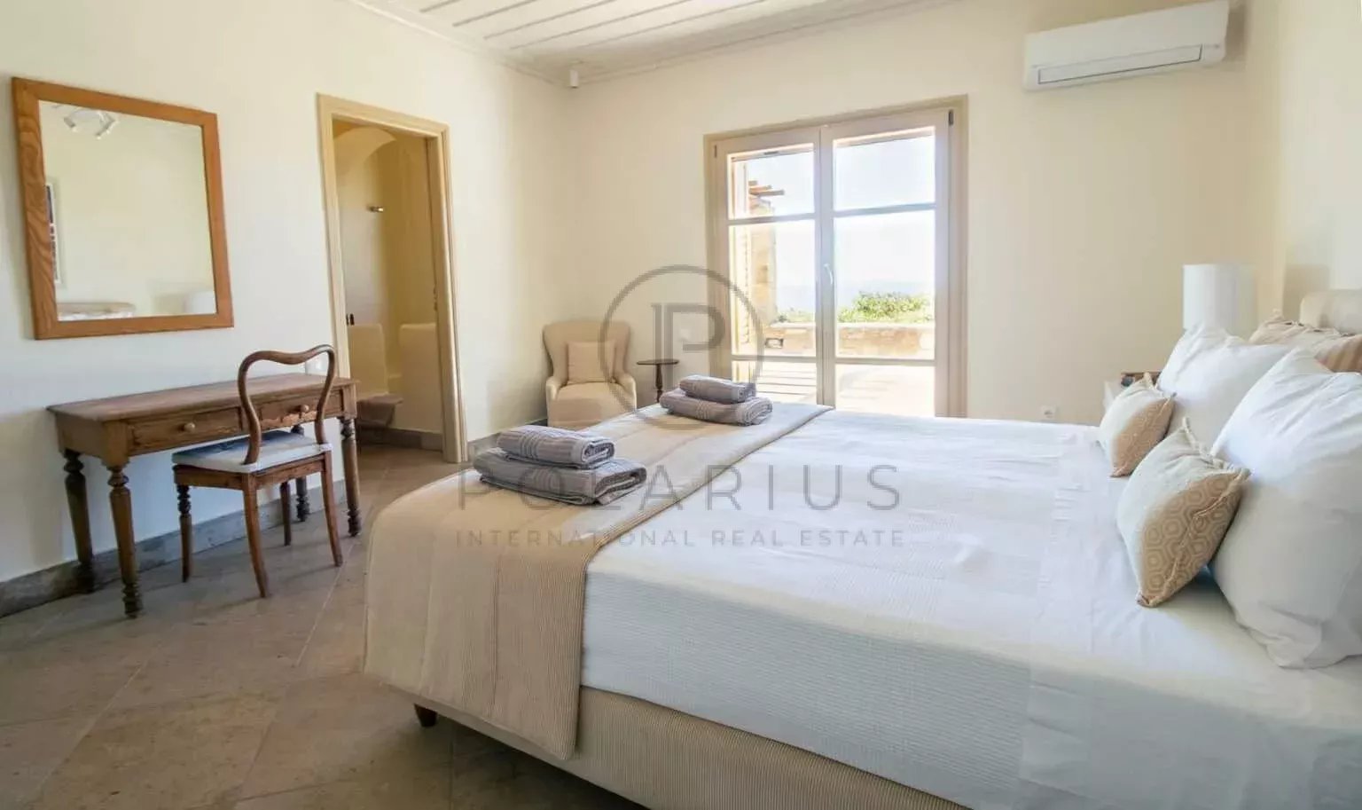 Situata nella zona privilegiata di Tourlos, a 6 minuti di auto dalla città di Mykonos, la villa fa parte di un complesso di due ville con eccezionale vista sul mare e sul tramonto.