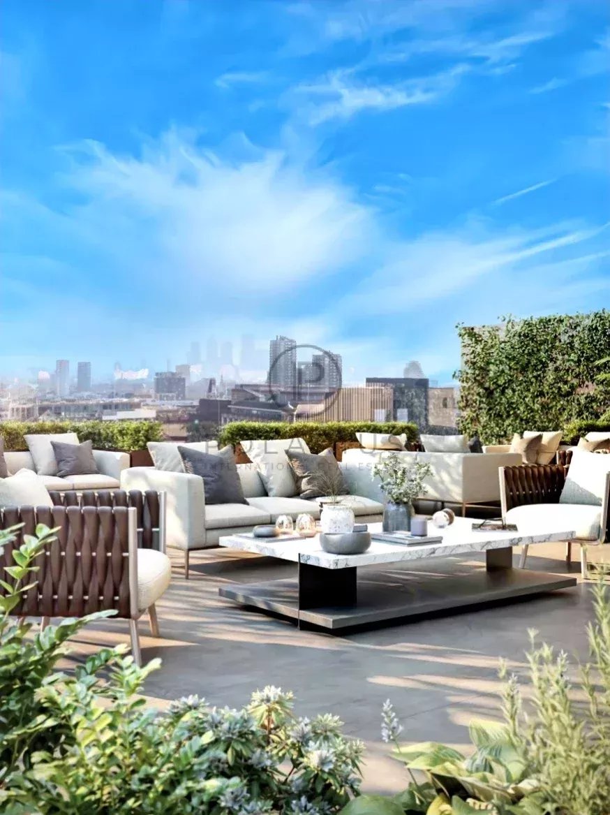 Una spettacolare terrazza privata sul tetto al 16° piano, che offre un'ampia e ininterrotta vista su Londra.