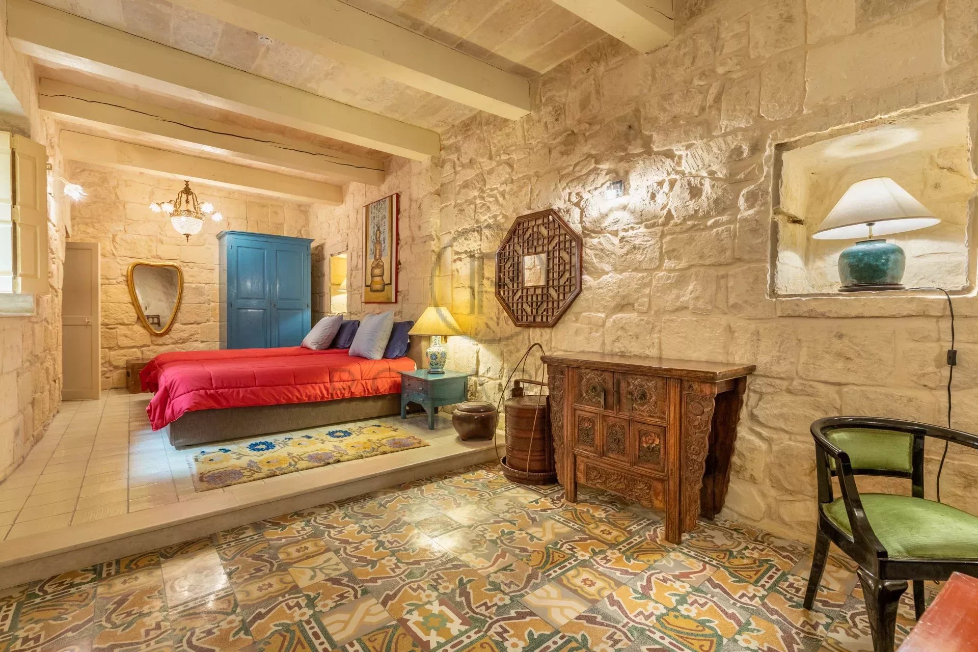 La maison a été restaurée avec sensibilité pour retrouver son ancienne gloire par le propriétaire actuel en une résidence familiale, disposant également d'une License MTA en tant que maison d'hôtes. La propriété dispone di quatre suite bien aménagées qui ouvrent une fenêtre sur un concept d'hospitalité unico, dove l'Oriente e l'Occidente s'equilibrent armonieusement. On est accueilli dans les elementi architettonici tradizionali maltesi che sont contrebalancés par des antiquités éclectiques, que les propriétaires ont collectionnées au cours de leurs Voyages et au fil du temps.