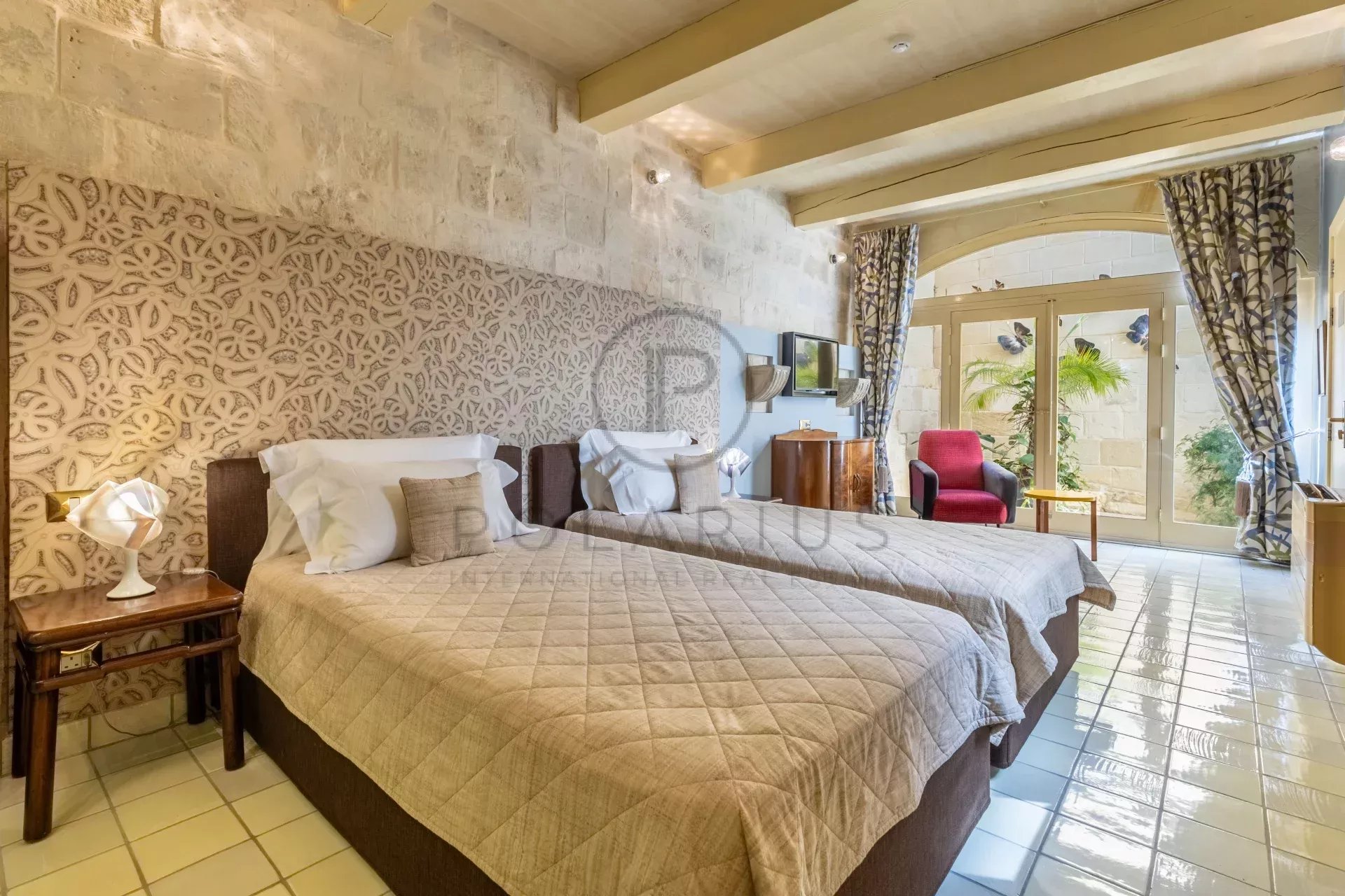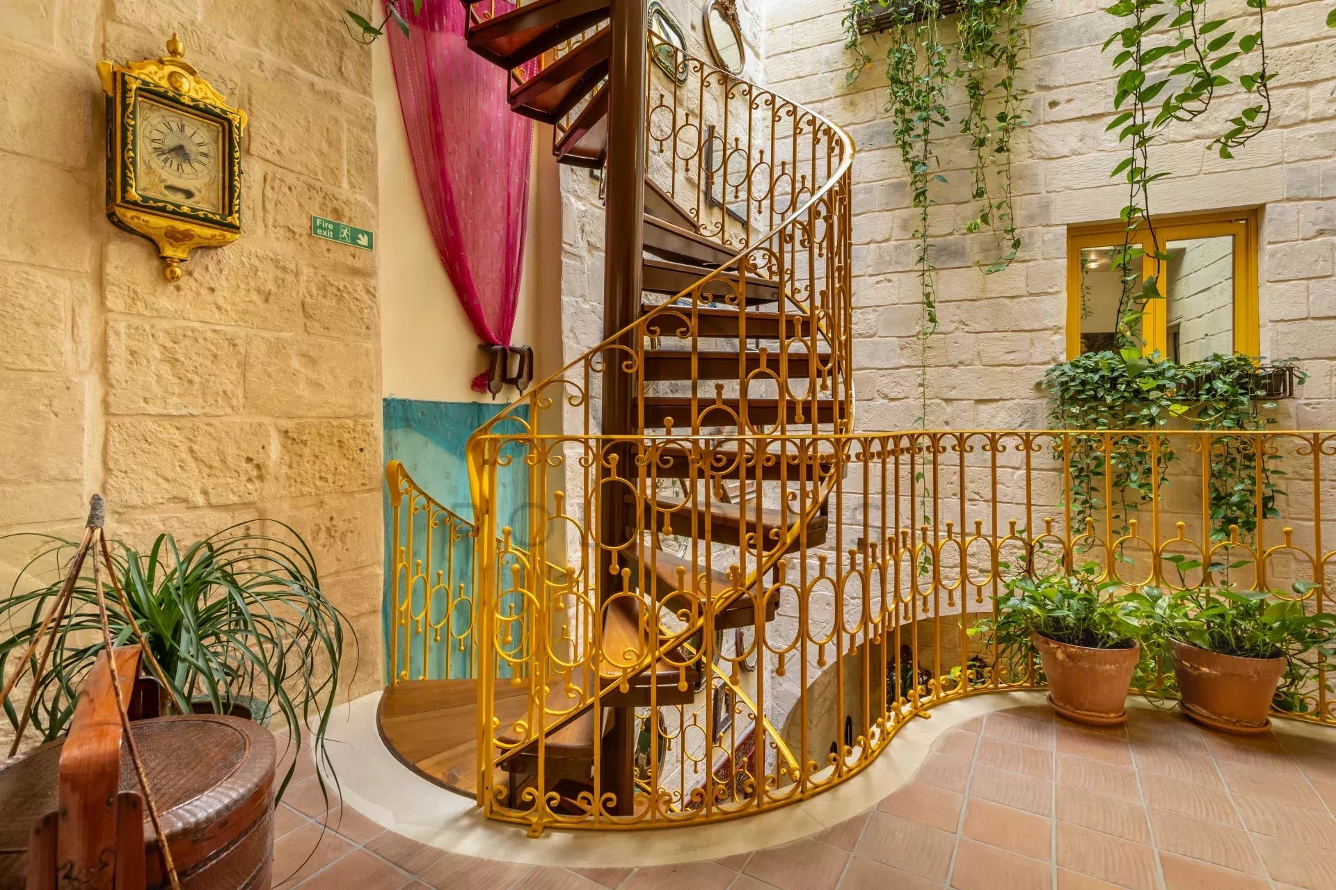 Le premier étage abrite deux chambres doubles, la première suite, située dans l'ancienne «Camera Nobile», dispone d'une alcôve privée avec un lit double et d'un balcon unique donnant sur la rue agréable et mesurant environ 50 m². La seconde est una suite lits jumeaux de 40 m² con un salone confortevole orné di mobili antichi unici nel loro genere e d'un lustro maltais à couper le souffle. Se vous considerez d'assez près, vous découvrirez peut-être un secret unique caché dans ses épais murs. Il secondo livello si apre su una suite doppia che mescola l'elemento murale accrocheur di Dame Vivienne Westwood con la sua terrazza zen privata nell'ambiente dei papillons, a disposizione della propria salle de bains privée. Au troisième niveau, on trouve une suite double lumineuse surplombant le quartier historique et offrant une vue imprenable sur l'église de l'Annonciation à proximité.