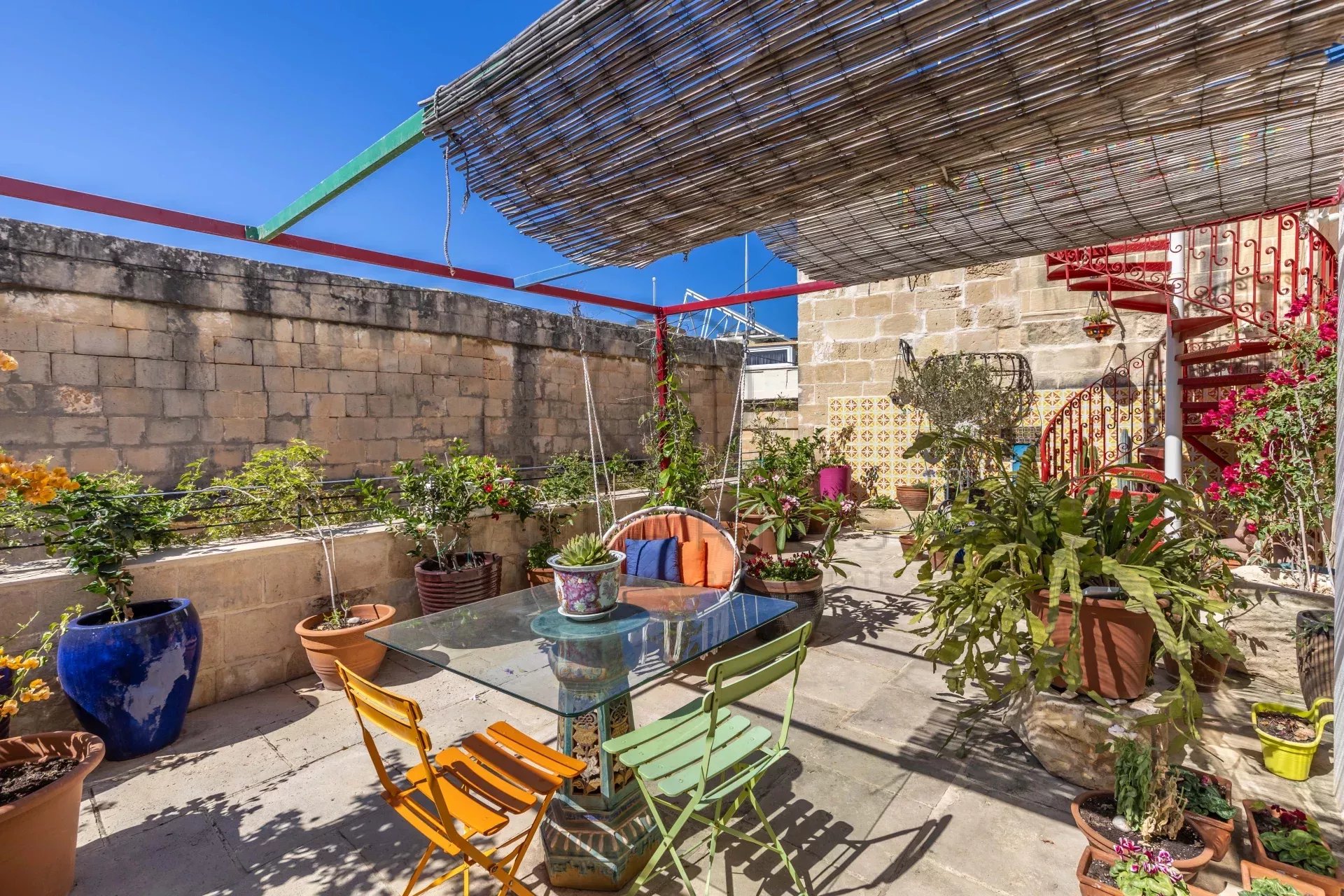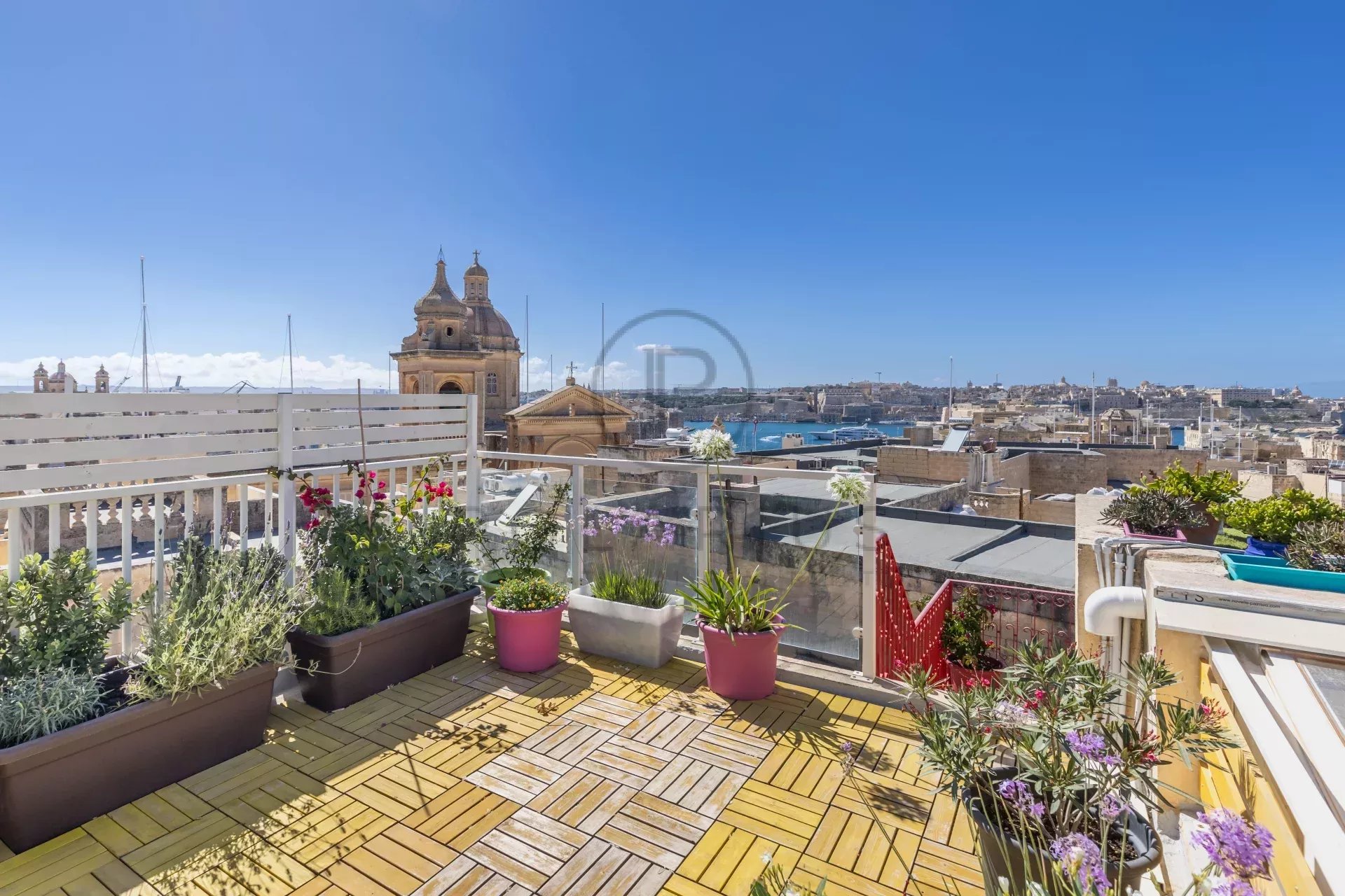 Le niveau du toit est uneoasis de paix où l'on peut se détendre, tandis que sur le toit supérieur, on peut profiter d'une vue sur la marina et sur la ville jusqu'à La Valette et le Grand Port.