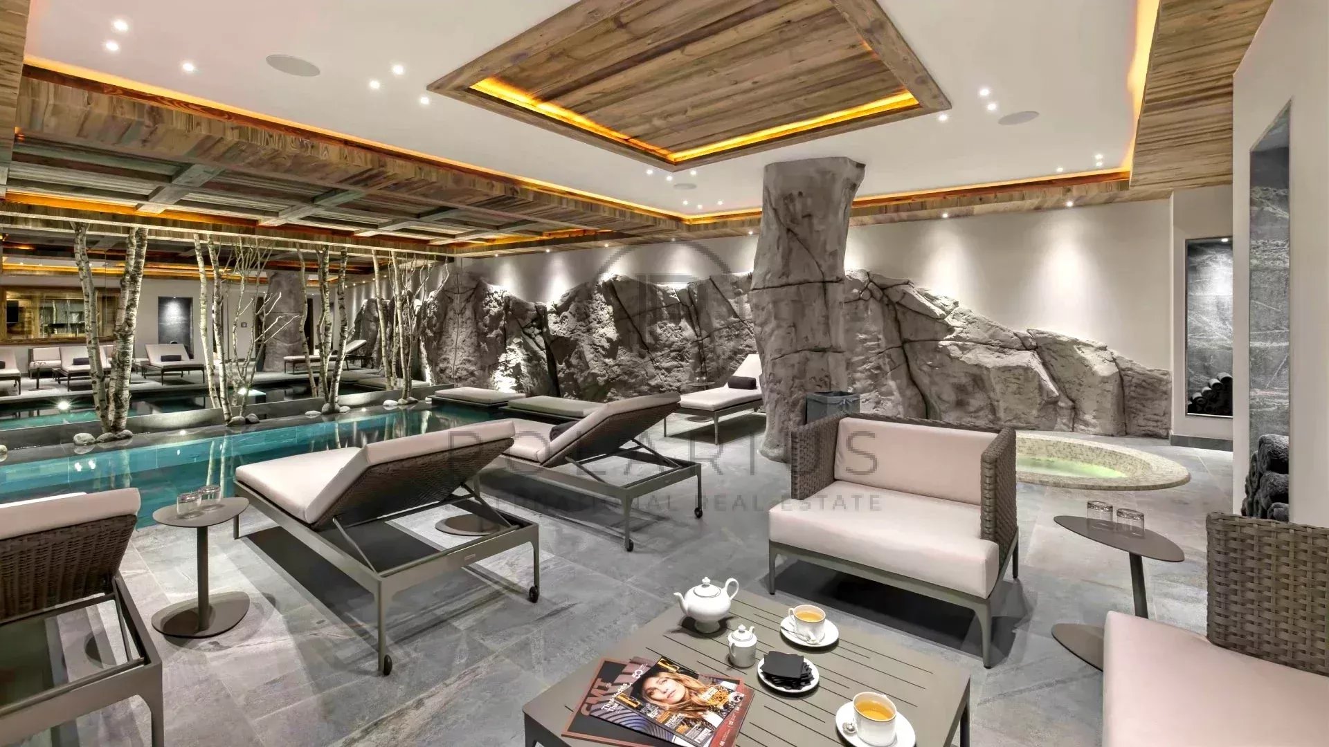Частный спа-салон шале предлагает святилище хорошего самочувствия с крытым бассейном, джакузи, сауной, хаммамом и массажным кабинетом. Для красоты и фитнеса есть специальный оздоровительный люкс с парикмахерской, тренажерным залом и косметическим кабинетом.