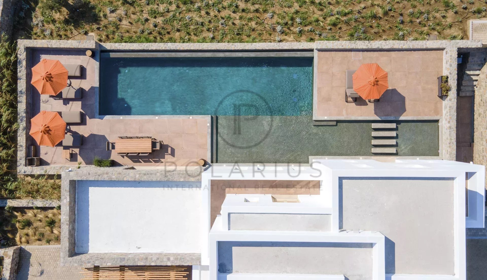 室外,入口层设有精心设计的温水无边泳池(80 平方米),周围有躺椅、遮阳伞和 8 人户外用餐区。 Villa Sereno 的设施无与伦比,包括智能房屋系统、中央制冷、加热地板、室外淋浴、发电机、闭路电视系统、报警系统、Wi-Fi、电视、私人停车场和 Molton Brown 洗浴用品。每间客房均配有吹风机和保险箱,并享有海景。