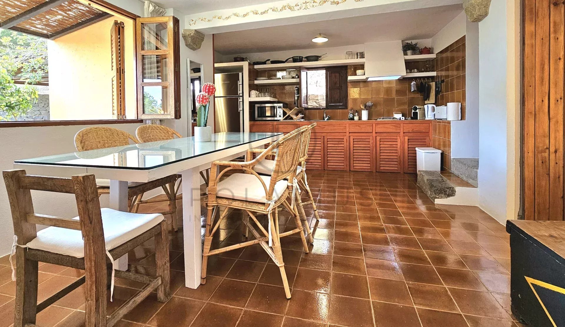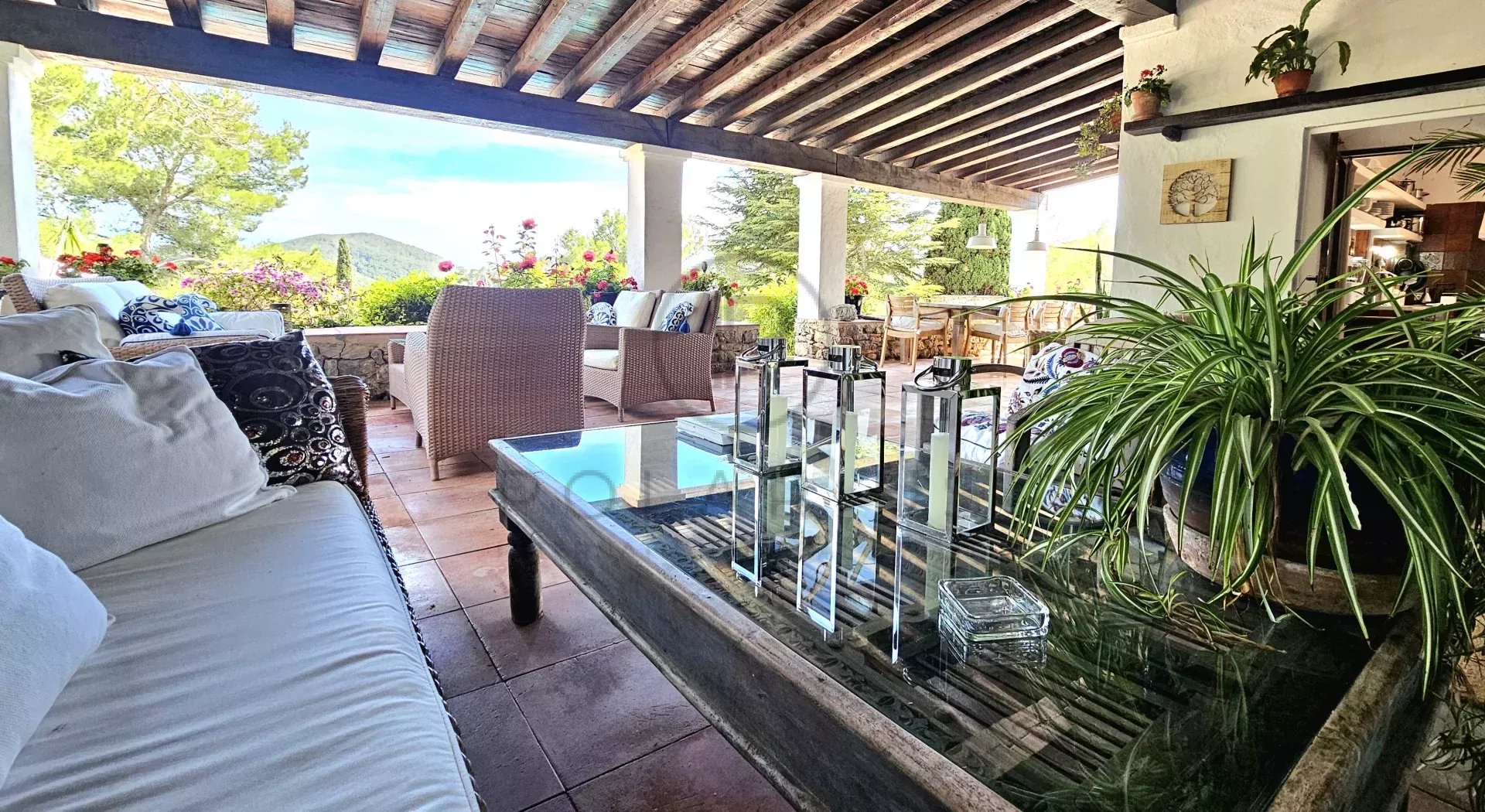 伊维萨岛的专属天堂这栋别墅坐落在青翠的风景之中,拥有一处带门禁的私人房产,享有无与伦比的宁静。别墅宽敞的设计包括三个独立的起居空间,确保最多可容纳 12 位客人的舒适性、私密性和灵活性。也欢迎携带宠物入住。