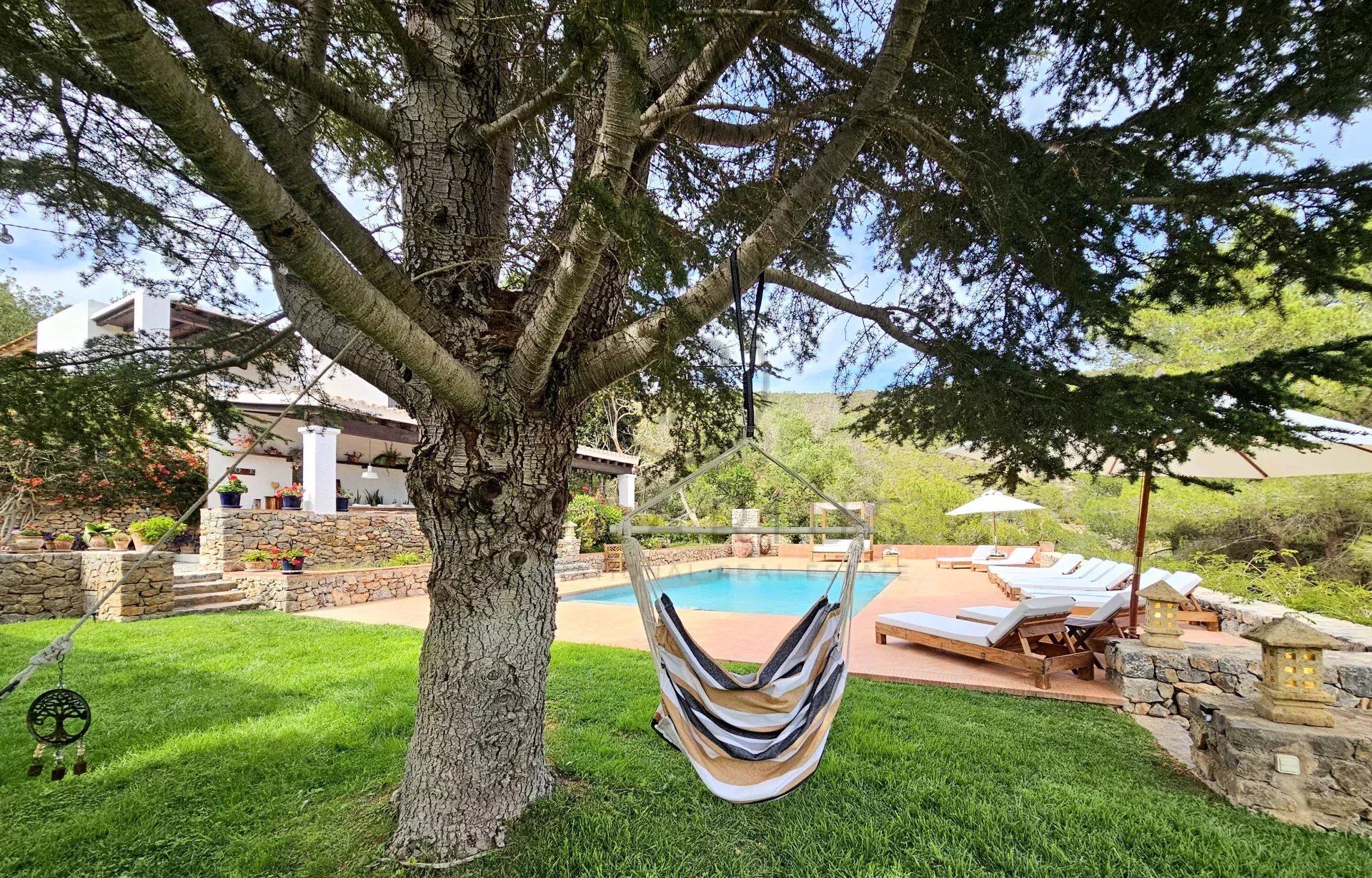 宁静的豪华度假胜地,提供私密、舒适的环境,并可欣赏伊维萨岛郁郁葱葱的山丘的壮丽景色。